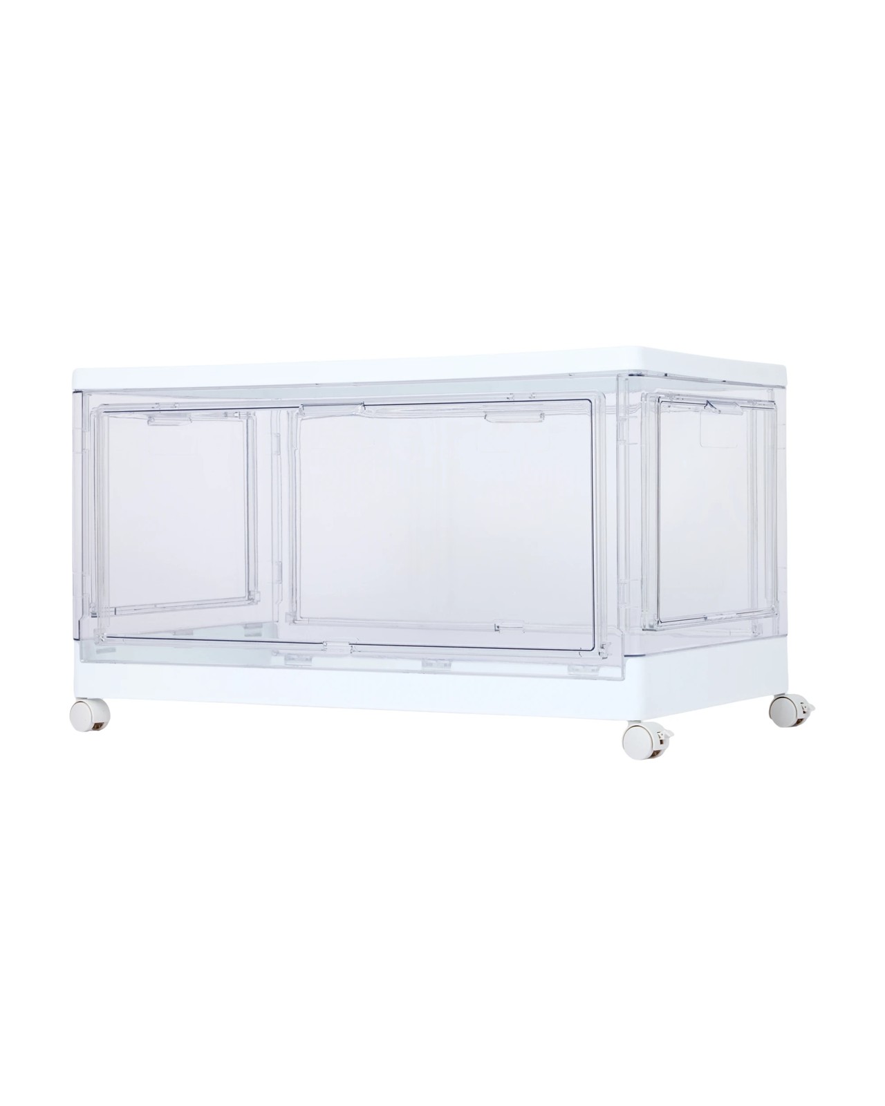 Reimagine your storage with the Anko 4-Door Rectangle Collapsible Box—your go-to solution for quickly sorting and tidying any living area. Thanks to its clever four-door access, finding your items is always hassle-free. Its clear and white design blends beautifully into any setting, while the foldable build means you can pack it away in seconds when not needed. The addition of wheels lets you move it around with ease, and by removing the wheels, stacking multiple boxes is a breeze. Great for organising toys, linens or everyday essentials, this box transforms busy spaces into calm, inviting environments. Take the next step towards a lighter, more organised home.