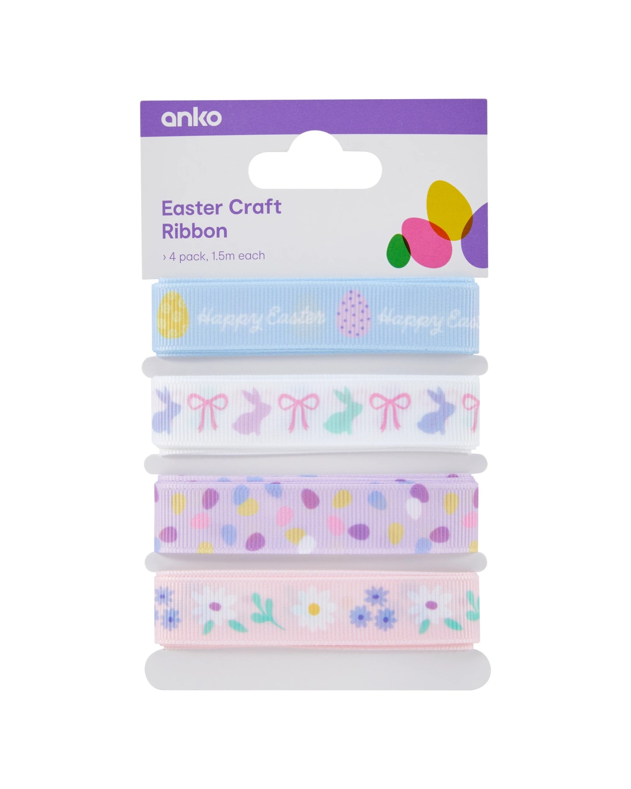 Add a delightful touch to your Easter celebrations with this Anko 4 Pack Easter Craft Ribbon. Whether you're wrapping gifts, decorating festive baskets, or adding flair to your springtime crafts, these printed ribbons bring vibrant charm to every moment. Measuring 150 centimetres in length each, there's plenty of beautifully designed ribbon to make your creations stand out. The coordinated set makes it easy to mix and match, whether you're creating something sweet for someone special or adding warmth to your home decor. Give your Easter projects a boost of colour and personality and make every detail count. Take your crafts to the next level – pick up your 4 pack today and start creating memories.