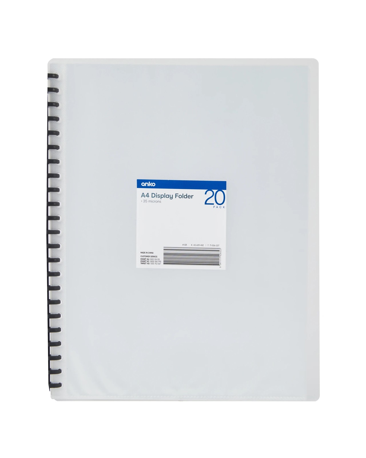 Bring a new level of order to your paperwork with the Anko A4 Display Folder, perfect for school, personal projects or any task that calls for smart organisation. Its crystal-clear cover lets you easily spot what you need at a glance, while the smooth spiral binding makes flipping through assignments, notes or important files a breeze. Featuring 20 handy pockets, you’ll have plenty of space to keep your documents neat and within reach, no matter where your day takes you. Lightweight and slim, it fits comfortably in your bag, making it simple to stay organised on the move. Enjoy the peace of mind that comes with having all your essentials in one compact, easy-to-access folder – your new go-to for tidy paperwork awaits!
