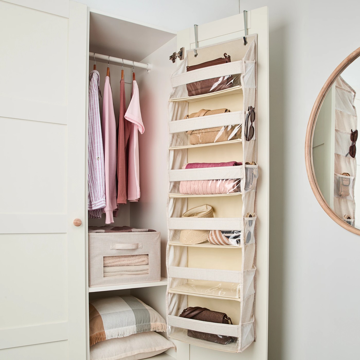 Transform your home into an organised oasis with the Linen Look Over the Door Organiser in timeless beige. Cleverly designed to make the most of your space, this organiser is perfect for anyone looking to tidy up accessories, toiletries or daily essentials without sacrificing precious floor area. Multiple compartments mean you can easily find what you need, whether you’re streamlining your bathroom or clearing hallway clutter. The enclosed drawers are great for keeping smaller items neatly tucked away, while its collapsible design provides flexible storage whenever you need it. Simply hang it over your door using the included hooks and enjoy instant, hassle-free organisation. Redefine your storage game and give yourself more room to breathe – bring home the Linen Look Over the Door Organiser today.