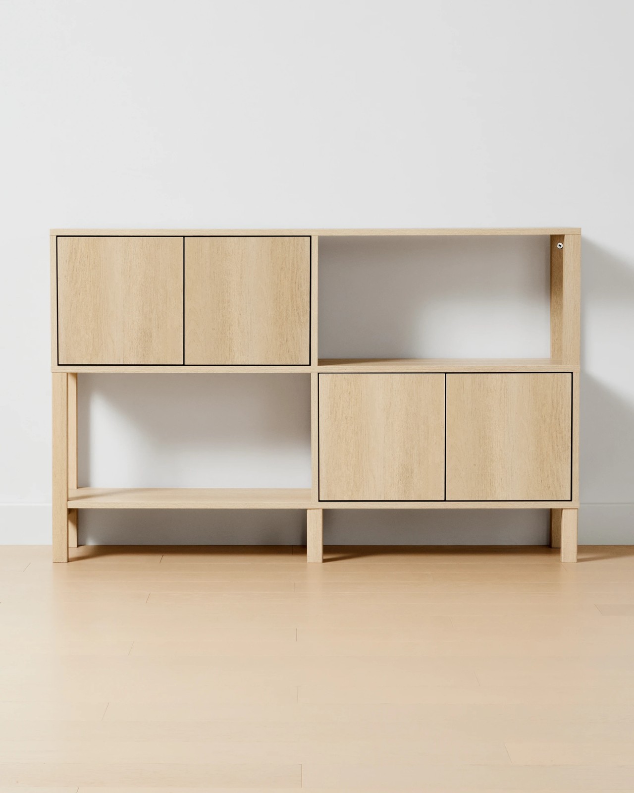 Sadie Wide Bookshelf with Doors - Light Oak Specifications