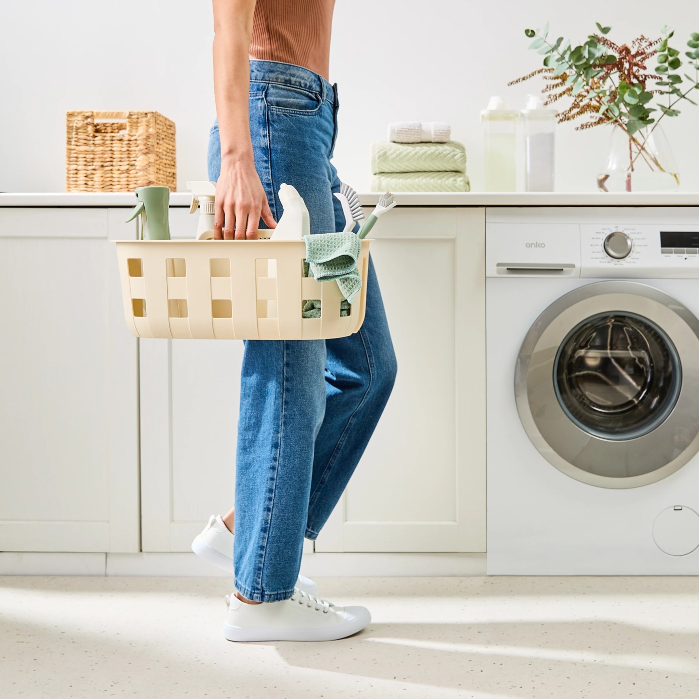 Effortlessly organise your cleaning supplies with the Anko Trellis Cleaning Caddy. The attractive trellis design and classic beige colour make it a delightful addition to any home. With two compartments, you can easily sort your sprays, cloths and other essentials, keeping everything within arm’s reach. The practical carry handle lets you grab your supplies and move from room to room, making every cleaning session smoother and more efficient. Say goodbye to mess and clutter and welcome a caddy that helps make household chores feel simpler and quicker. Choose the Anko Trellis Cleaning Caddy and keep your routine running smoothly.