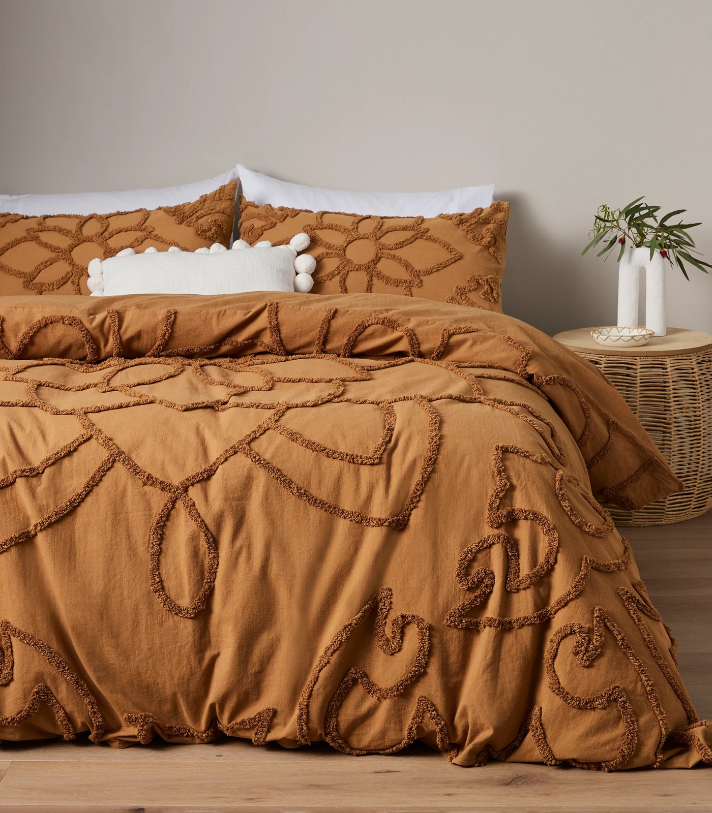 Available in a pecan brown colour, the Ariah Tufted Quilt Cover Set is a beautiful choice for the bedroom. It's made from soft, breathable cotton for comfort throughout the seasons and has tufted texture in a statement floral design.
