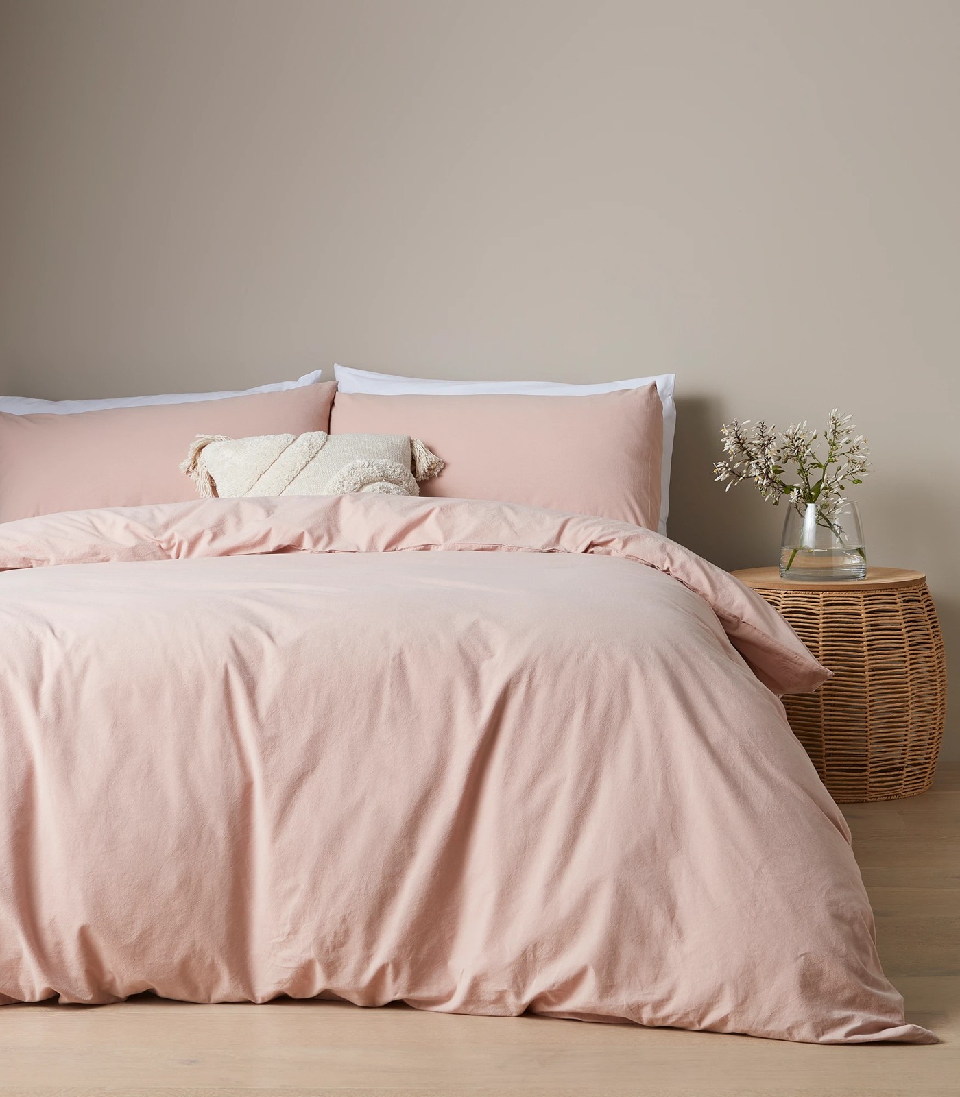 The Arlo Stonewash Quilt Cover Set offers a comfortable and stylish addition to any bedroom. Made from soft cotton, it is perfect for use in both summer and winter months. Its subtle texture invites touch for a truly enjoyable experience.