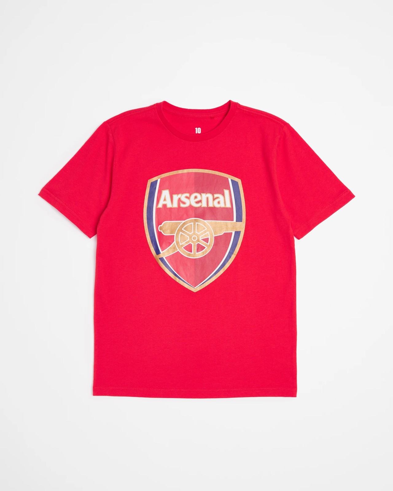 This comfortable boys' T-shirt is a must-have for any fan of Arsenal. Crafted from cotton rich fabric, it features a regular fit with a ribbed crew neckline and short sleeves. The T-shirt is finished with a large Arsenal print to the front and straight hem to complete the look. Perfect for everyday wear or when cheering on the team!