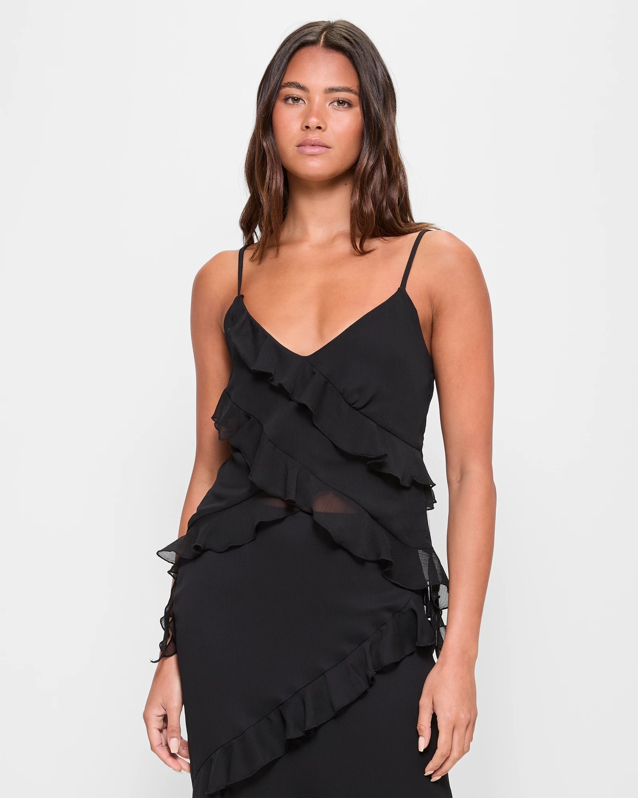 Unveil the charm of the Asymmetrical Ruffle Cami from Lily Loves, designed for those who appreciate a blend of style and whimsy. Made from a comfortable polyester fabric, this cami features a lined front that enhances support and structure. Its lightweight feel and regular fit make it an excellent choice for everyday wear. Boasting a v-neckline and thin adjustable shoulder straps, it ensures a seamless fit each time. The asymmetrical panelling and ruffles add a unique touch, while the side tassels infuse a playful element. Perfect for pairing with high-waisted jeans or a flirty skirt, this cami makes styling effortless.