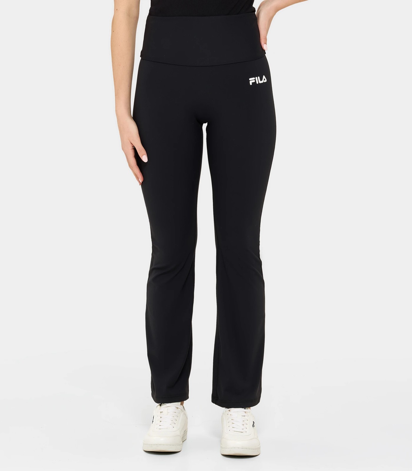 Elevate your style and comfort in the Fila Audrina flare tights allowing you to move freely, feel supported and comfortable all day. With its soft buttery fabric and flare design, this pant is the perfect body-hugging shape to flatter you in all the right places. Perfect for lounging, in and out of the studio, or heading out for a walk or a casual coffee. Featuring an extended fold over waistband for extra comfort and to snatch you in, and a small Fila print to the left hip.