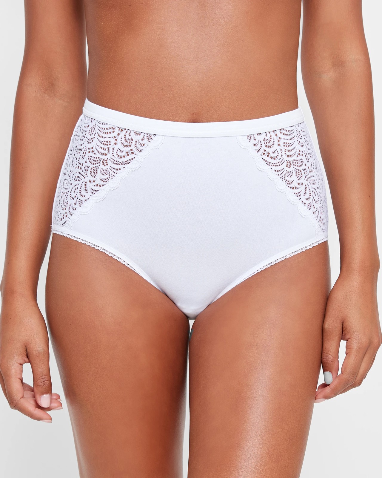 Indulge in the comfort and luxury of our Australian Cotton and Lace Full Briefs. Made from a supremely soft cotton-rich blend, these briefs offer optimal stretch for all-day comfort. The delicate lace side detail adds a touch of femininity to the design. With a low-cut leg and elastic waistband, these full briefs sit comfortably at the waist, providing a flattering fit. Designed for full back coverage, these briefs are perfect for everyday wear. Treat yourself to the ultimate blend of comfort and style with our Australian Cotton and Lace Full Briefs.
