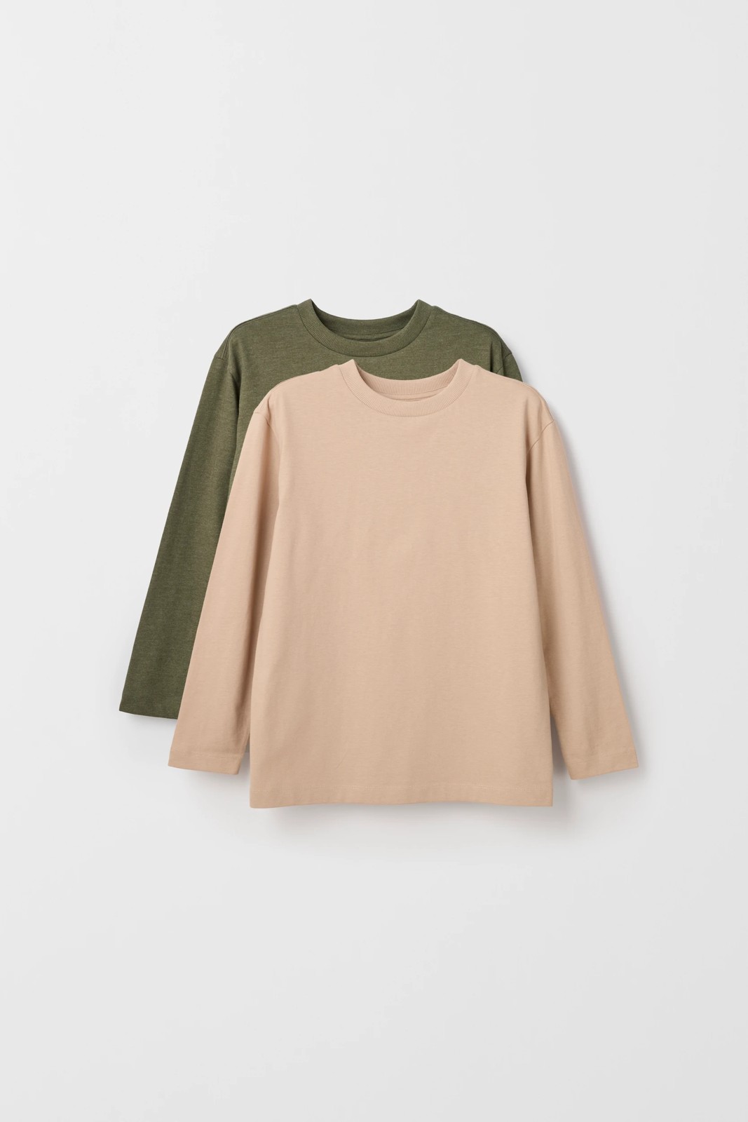 Australian Cotton 2 Pack Long Sleeve T-Shirt - Green/Light Mocha