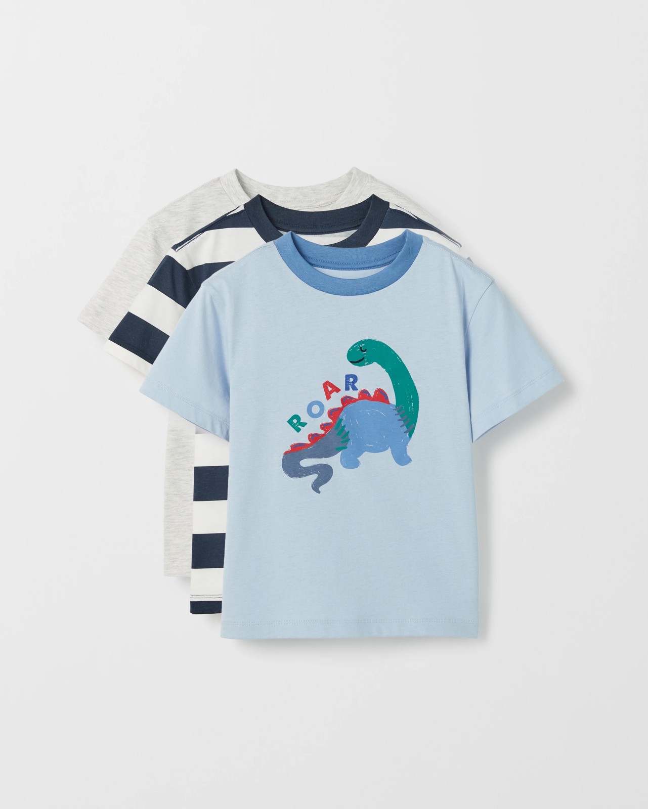 Refresh his wardrobe essentials with this convenient 3-pack of Australian cotton t-shirts, perfect for everyday comfort. Designed with a soft touch fabric, each t-shirt is crafted from an Australian cotton blend, offering a gentle feel that stands up to active days. The classic crew neckline and short sleeves make these t-shirts a versatile choice for layering, playtime, or heading out. With a mix of fun colours and prints in every pack, he can express his unique style with ease. These t-shirts offer a straight hemline for a smart and relaxed finish. Upgrade his basics with this reliable set and ensure he’s ready for any adventure. Don’t miss out—treat him to all-day comfort and effortless style today.