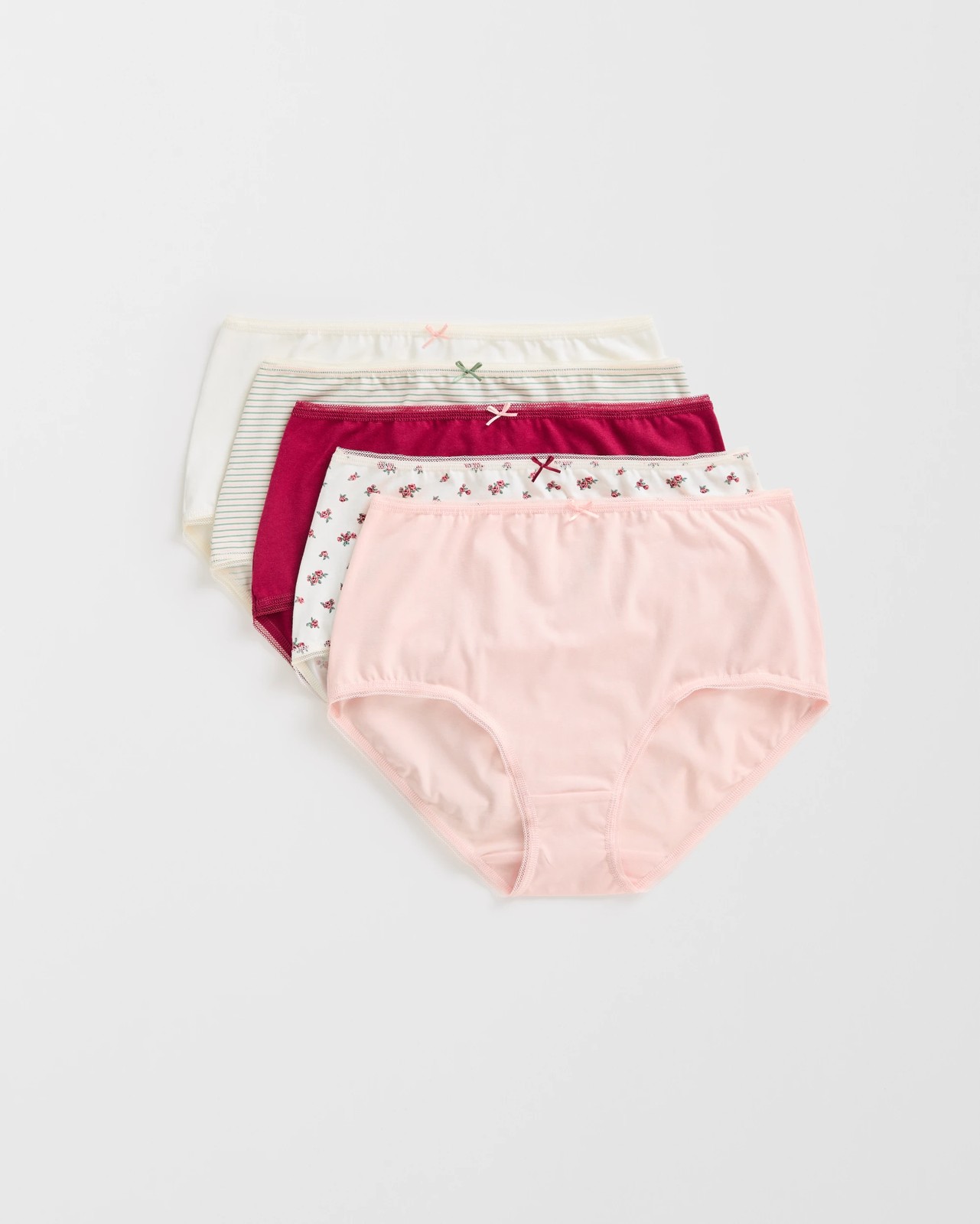 Australian Cotton 5 Pack Full Briefs - Red Floral Ditsy and Stripe