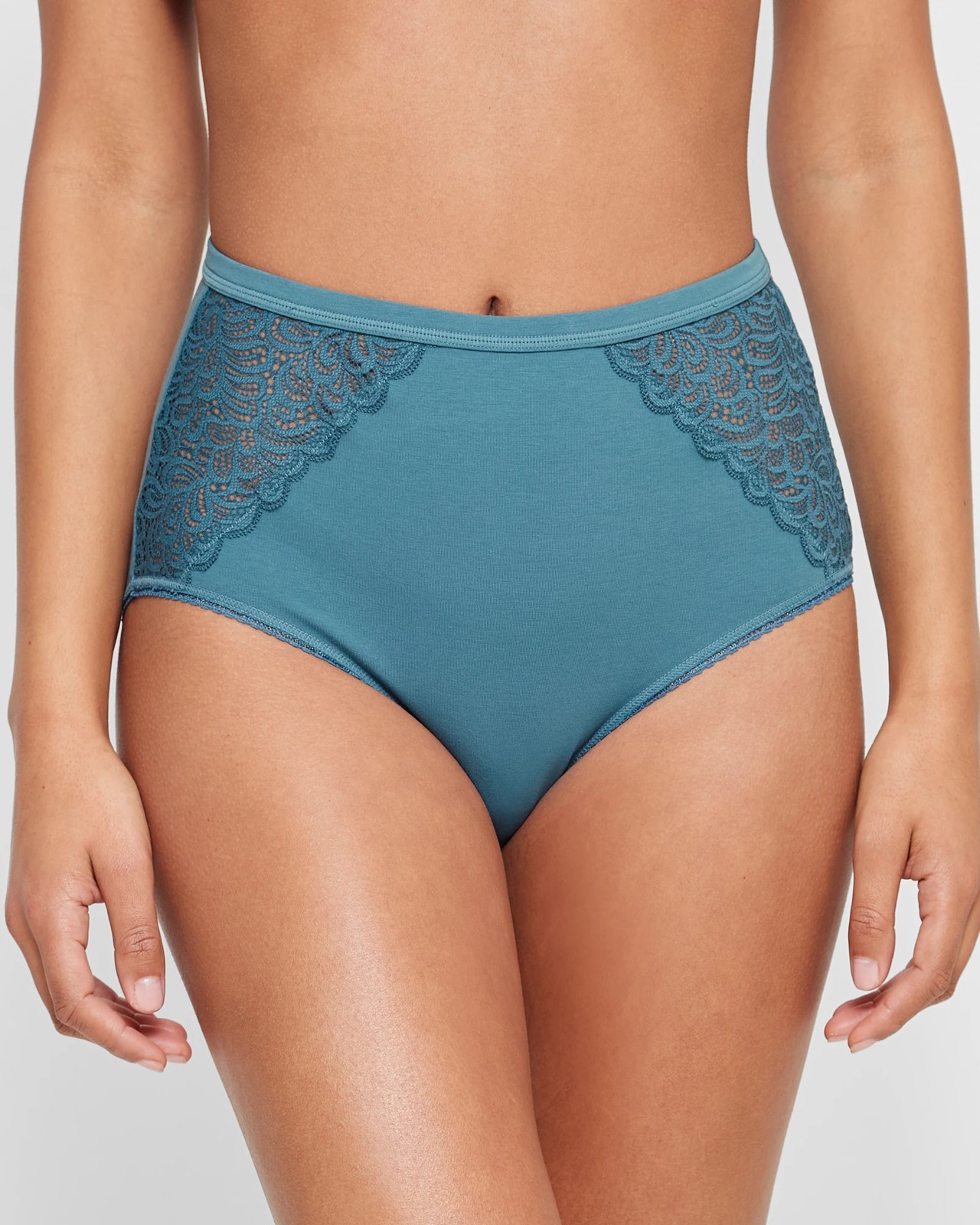 Indulge in the comfort and luxury of our Australian Cotton and Lace Full Briefs. Made from a supremely soft cotton-rich blend, these briefs offer optimal stretch for all-day comfort. The delicate lace side detail adds a touch of femininity to the design. With a low-cut leg and elastic waistband, these full briefs sit comfortably at the waist, providing a flattering fit. Designed for full back coverage, these briefs are perfect for everyday wear. Treat yourself to the ultimate blend of comfort and style with our Australian Cotton and Lace Full Briefs.
