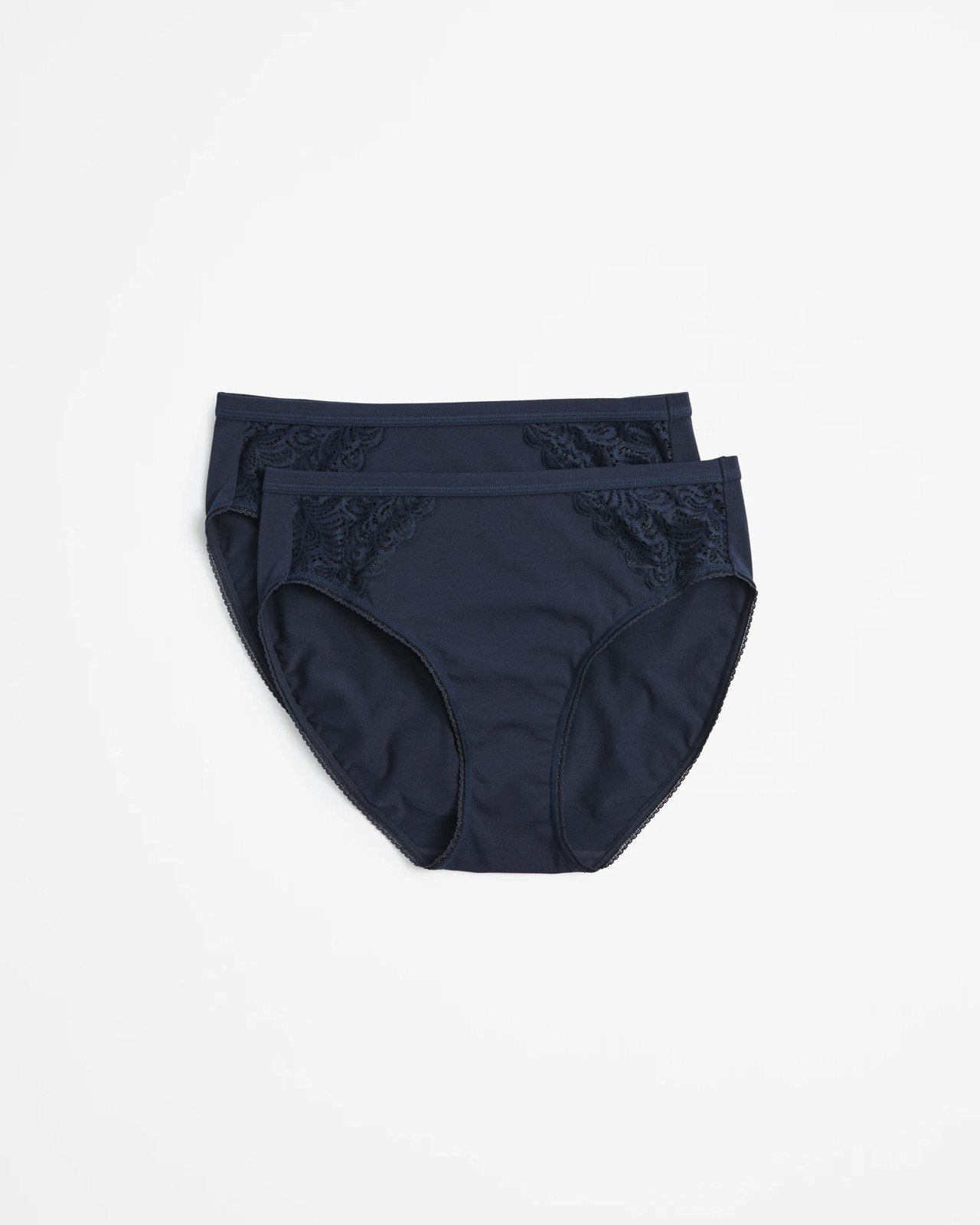 Australian Cotton and Lace High Cut Briefs - Navy Blue