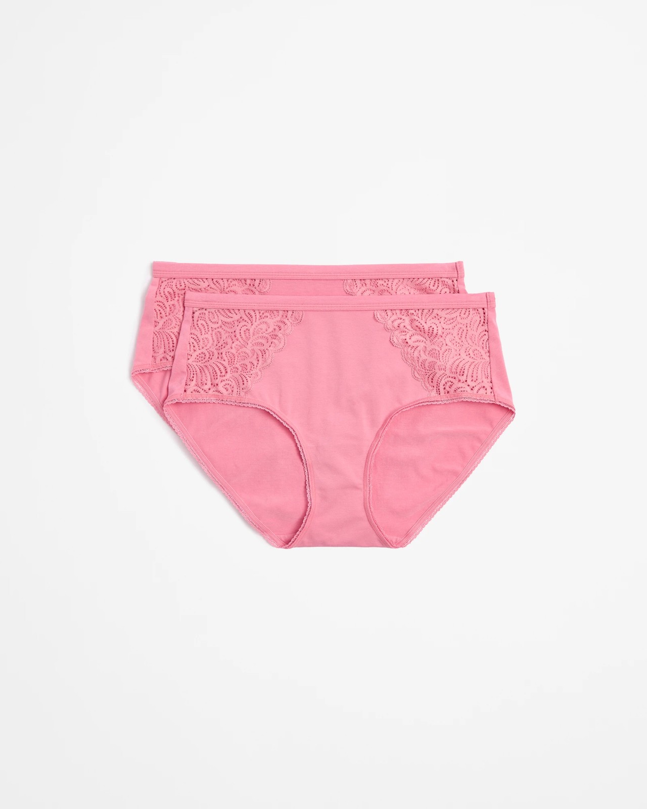 Embrace the perfect fusion of comfort and sophistication with our Australian Cotton and Lace Midi Briefs. The cotton-rich fabric combined with stretch elastane ensures you will remain comfortable throughout the day. Adorned with intricate lace detailing on the sides, these briefs exude a sense of refined style. Each pack comes with two briefs, offering great value. The thin ribbed waistband and scalloped edging provide a sleek look, while the midi cut ensures full back coverage. Enhance your daily wardrobe with these elegant and dependable briefs.