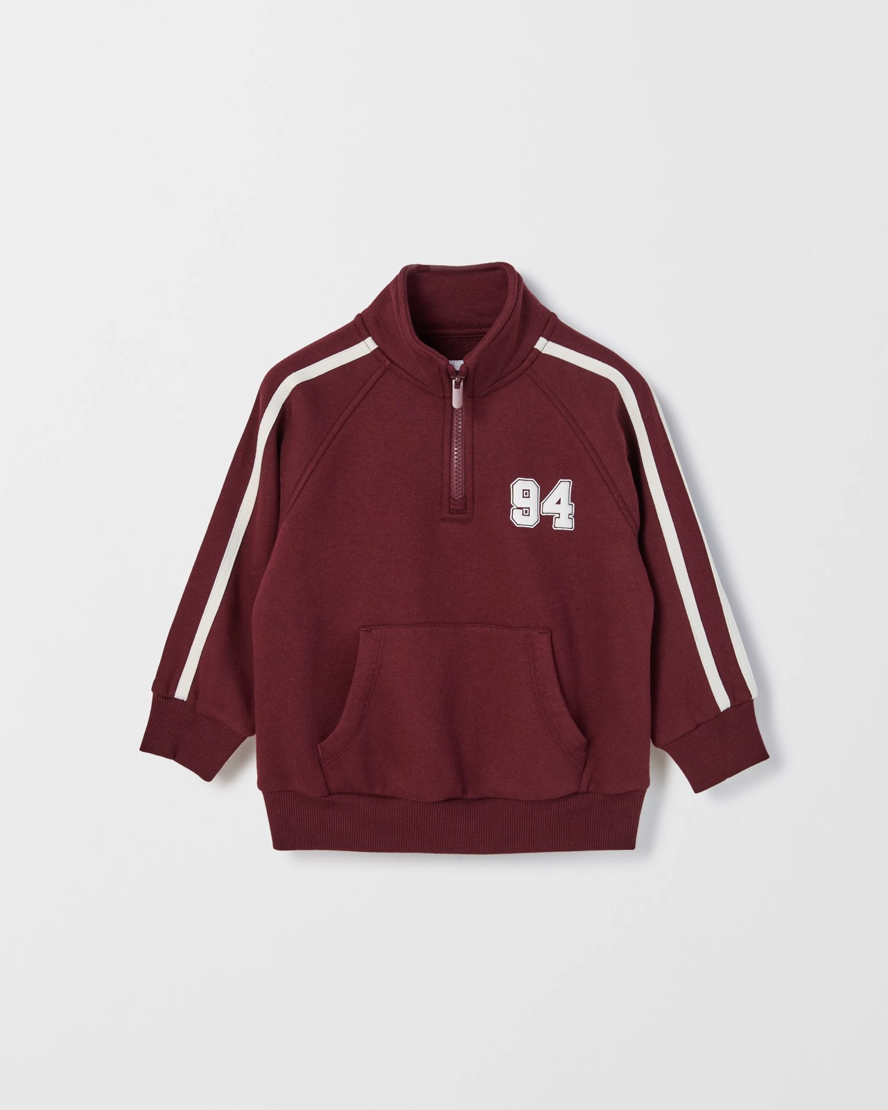 Brighten your child's day with the Australian Cotton Blend 1/4 Zip Sweat Top, the perfect layer for every occasion. Made with a gentle cotton and polyester blend that includes Australian cotton, this sweat top delivers a soft touch while being ready for all sorts of fun and games. The brushed fleece interior helps keep them toasty when it’s chilly out and the addition of stretch allows freedom of movement from morning until evening. With its modern funnel neck, bold ribbed hem and lively herringbone tape on the sleeves, your youngster enjoys both comfort and fresh style. The convenient kangaroo pocket adds a practical touch they’ll love. Give them an outfit staple they’ll reach for again and again.