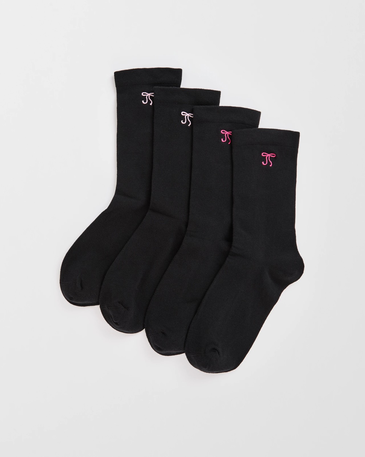 Australian Cotton Blend 4 Pack Bow Embroidery Crew Socks