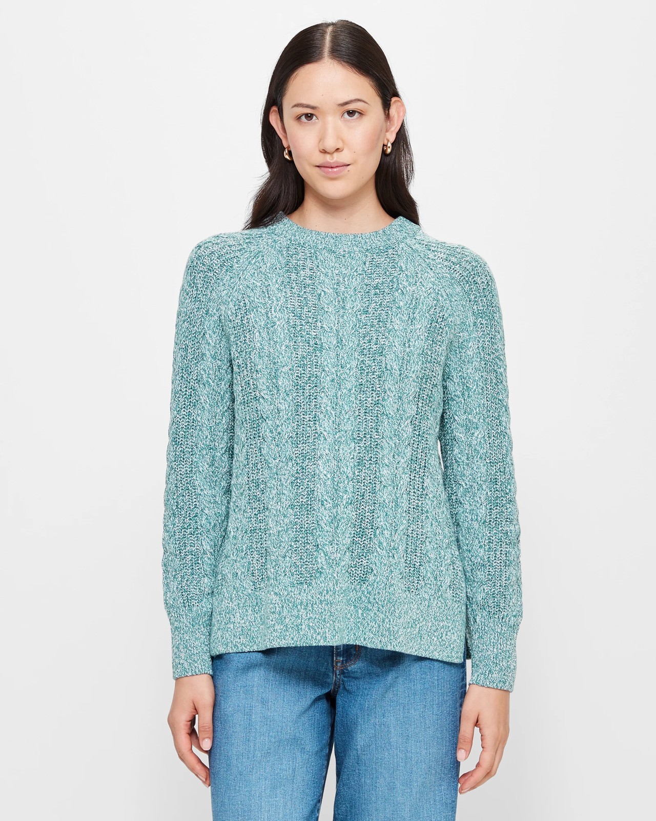 Introducing our Australian Cotton Blend Cable Knit Jumper, the perfect addition to your winter wardrobe. Crafted from a luxurious blend of cotton and acrylic, this womens knit jumper offers both style and comfort. The jumper features a classic cable knit design that adds texture and detail to your outfit. With its regular fit and ribbed crew neckline, it offers a flattering look for any occasion. The long ribbed cuff sleeves and thick ribbed straight hemline provide warmth and a cosy feel. Made with Australian cotton, this jumper celebrates the quality of locally sourced materials. Update your wardrobe with our cable knit jumper and stay warm in style this winter.
