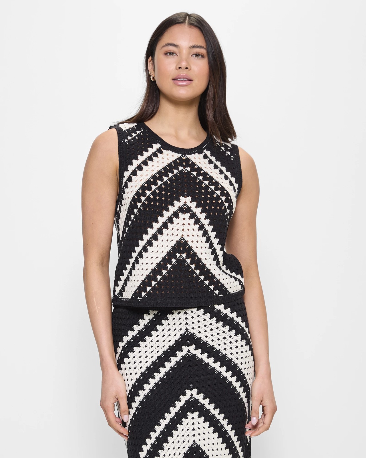 Australian Cotton Blend Chevron Crochet Tank Top - Lily Loves