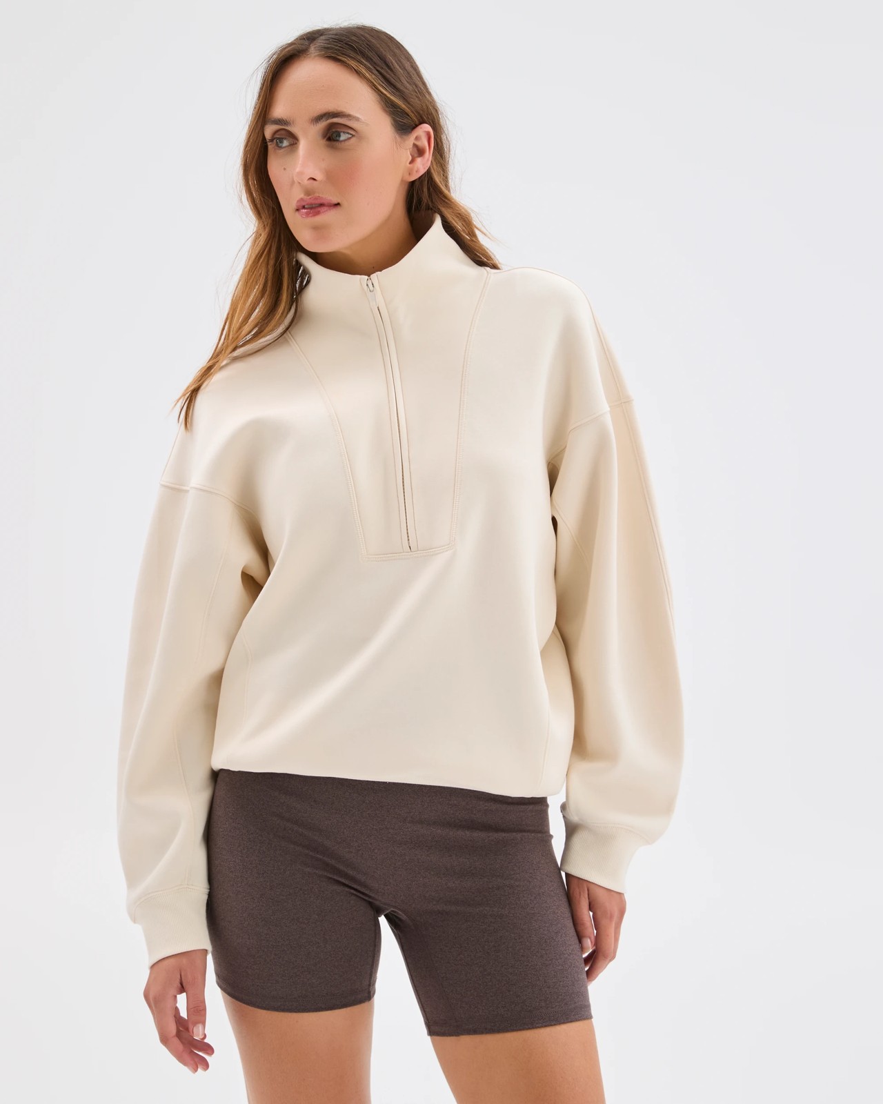 Australian Cotton Blend Cocoon 1/4 Zip Fleece Jumper - Oatmilk
