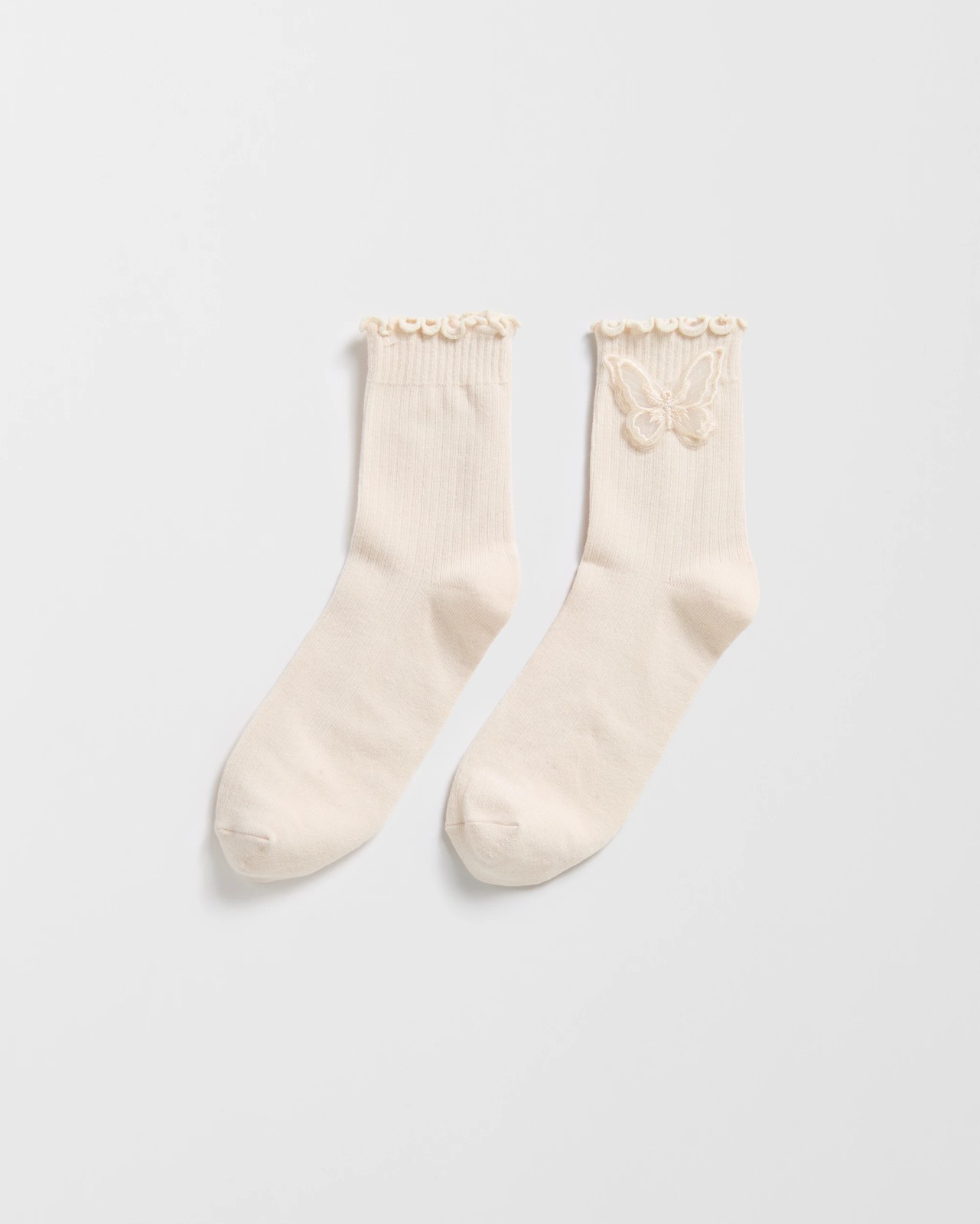 Step into cheerful style with these Australian Cotton Blend Fashion Embellished Crew Length Socks, designed to brighten your daily routine. Featuring a charming 3D butterfly embellishment, these socks add a playful accent that’s sure to make you smile. The blend of Australian cotton and recycled polyester, with stretch elastane, ensures a soft feel and a comfortable fit for all-day wear. Their crew length keeps them perfectly in place, making them a reliable choice for any occasion. Ideal for those who love a touch of fun in their footwear, these socks promise both comfort and charm. Refresh your collection and treat your feet—bring home these delightful socks today.