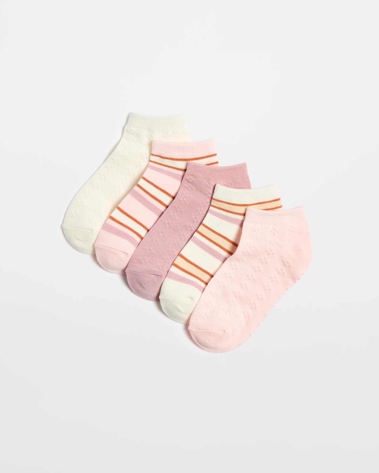 Let her enjoy daily adventures with these delightful girls' low cut socks. Made from a cotton-rich blend with stretch elastane, each pair offers gentle comfort and flexibility that keeps up with every step. The set features five pairs in cheerful pink and white, with stylish stripes and textured patterns and is finished with a soft ribbed top to keep them secure all day. Perfect for school or play, these socks add both fun and snugness to her everyday outfits. Make each day more colourful—give her feet the comfort they deserve.