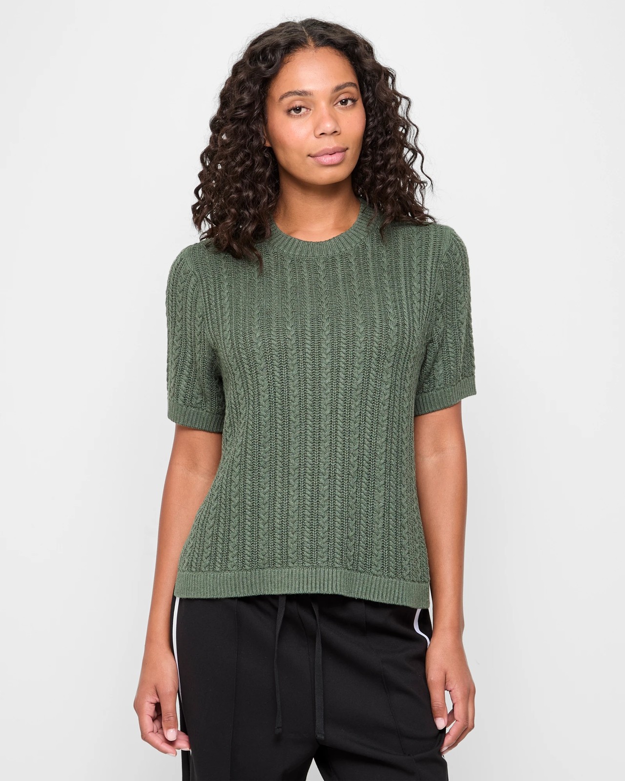 Enhance your wardrobe with our Australian Cotton Blend Knitted Cable T-Shirt. This stylish piece is made from a superior blend of cotton and viscose, featuring genuine Australian cotton for exceptional comfort. The all-over knitted cable pattern adds a touch of sophistication to your casual look, while the khaki green marle hue provides a fresh and versatile option. Enjoy a perfect fit with the ribbed crew neckline, short ribbed cuff sleeves, and a straight ribbed hemline. Discover the effortless charm and timeless appeal of this must-have tee today.
