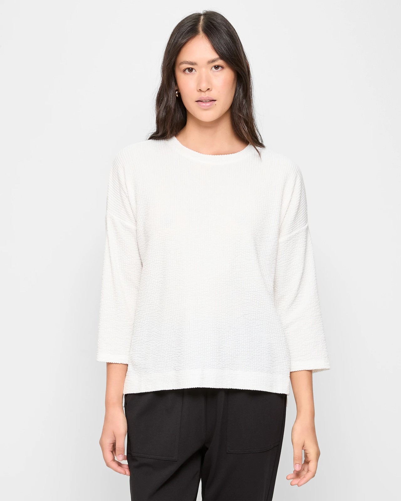 Australian Cotton Blend Long Sleeve Boxy Textured T-Shirt