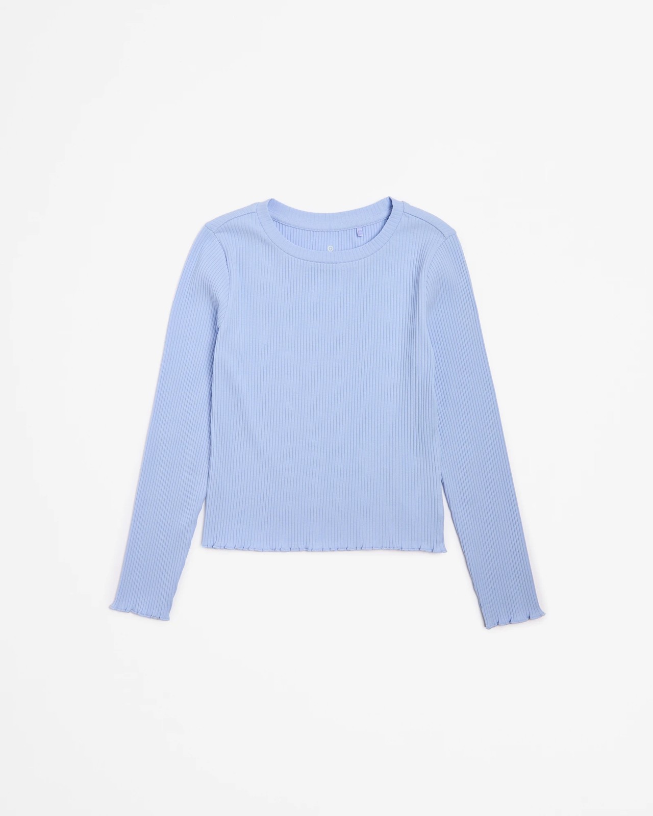 Experience ultimate comfort with our Australian Cotton Blend Long Sleeve Rib Top. Perfect for young girls, this fitted top is made from a high-quality Australian cotton blend that offers fantastic stretch, ensuring all-day comfort. The crew neck design and long sleeves with charming lettuce cuffs add a delightful touch of style. The straight lettuce hem provides a trendy finish to an already stylish piece. Enhance your little one's wardrobe and let them enjoy a combination of comfort and fashion. Grab this must-have top today.