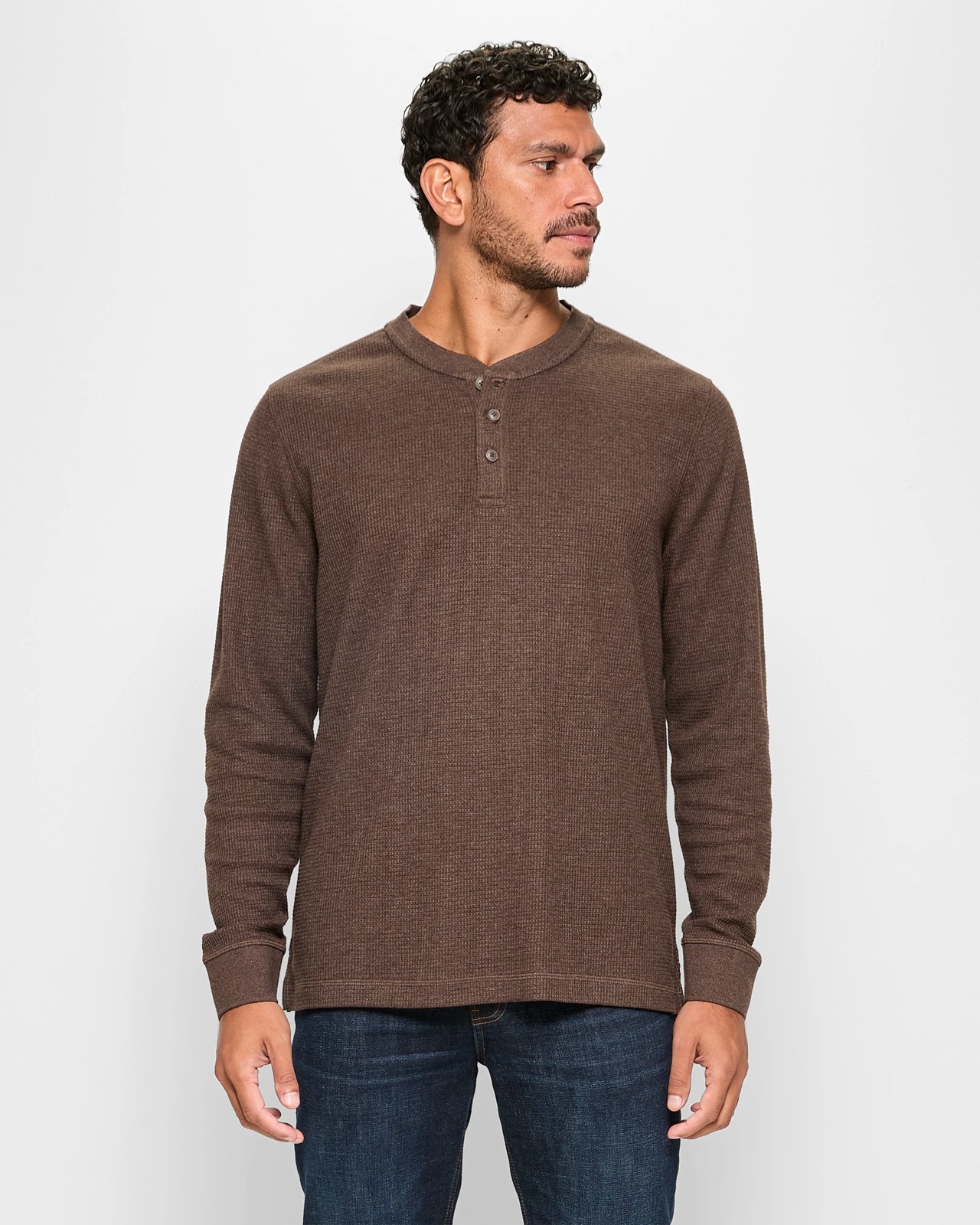 Australian Cotton Blend Long Sleeve Waffle Henley Top