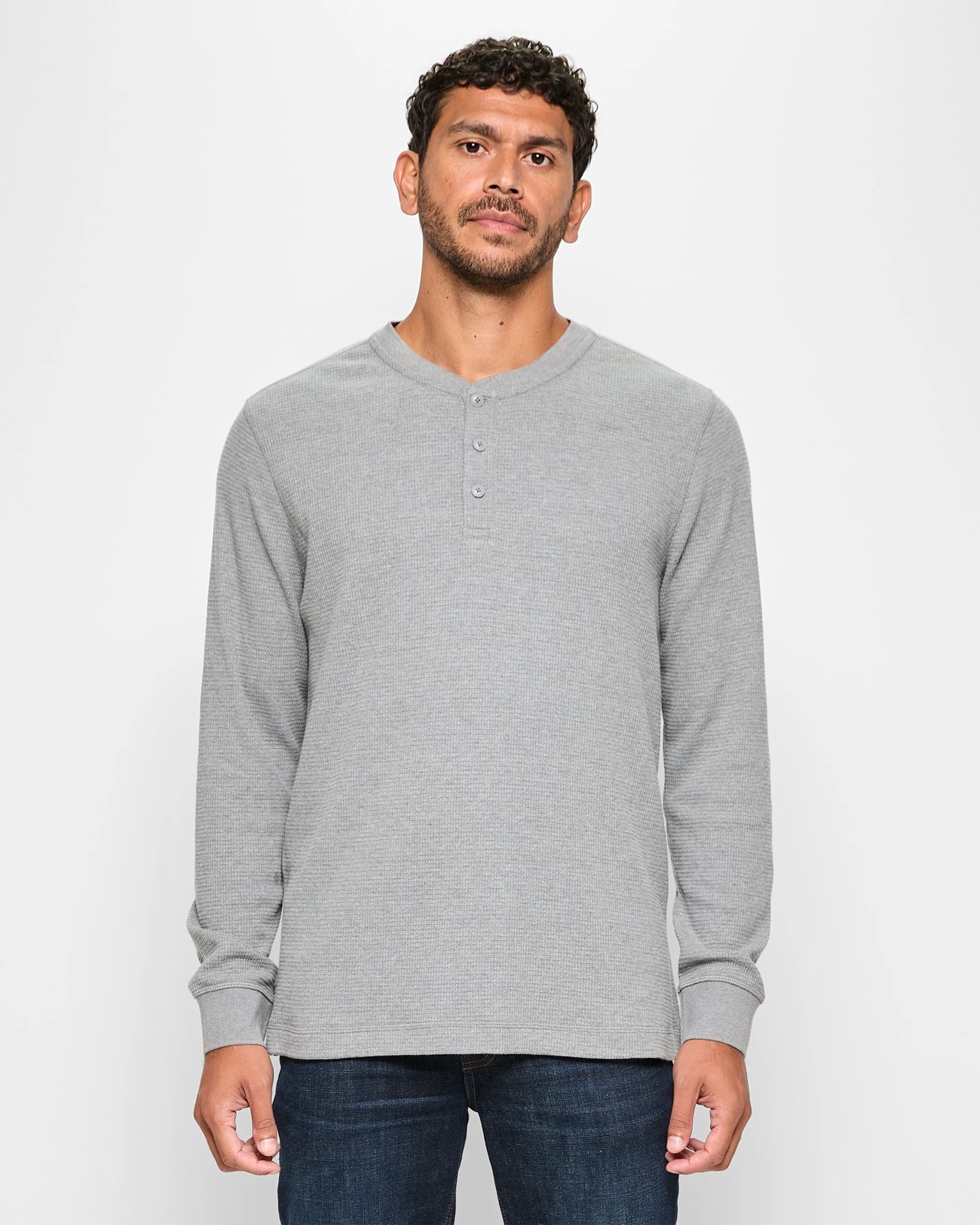 Australian Cotton Blend Long Sleeve Waffle Henley Top