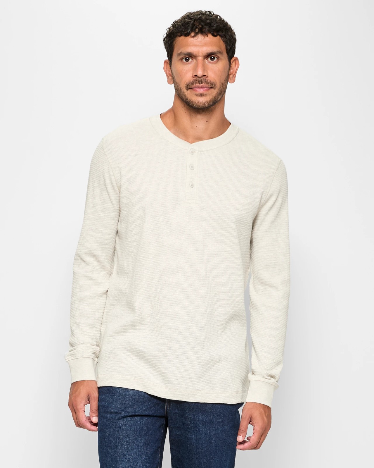 Australian Cotton Blend Long Sleeve Waffle Henley Top