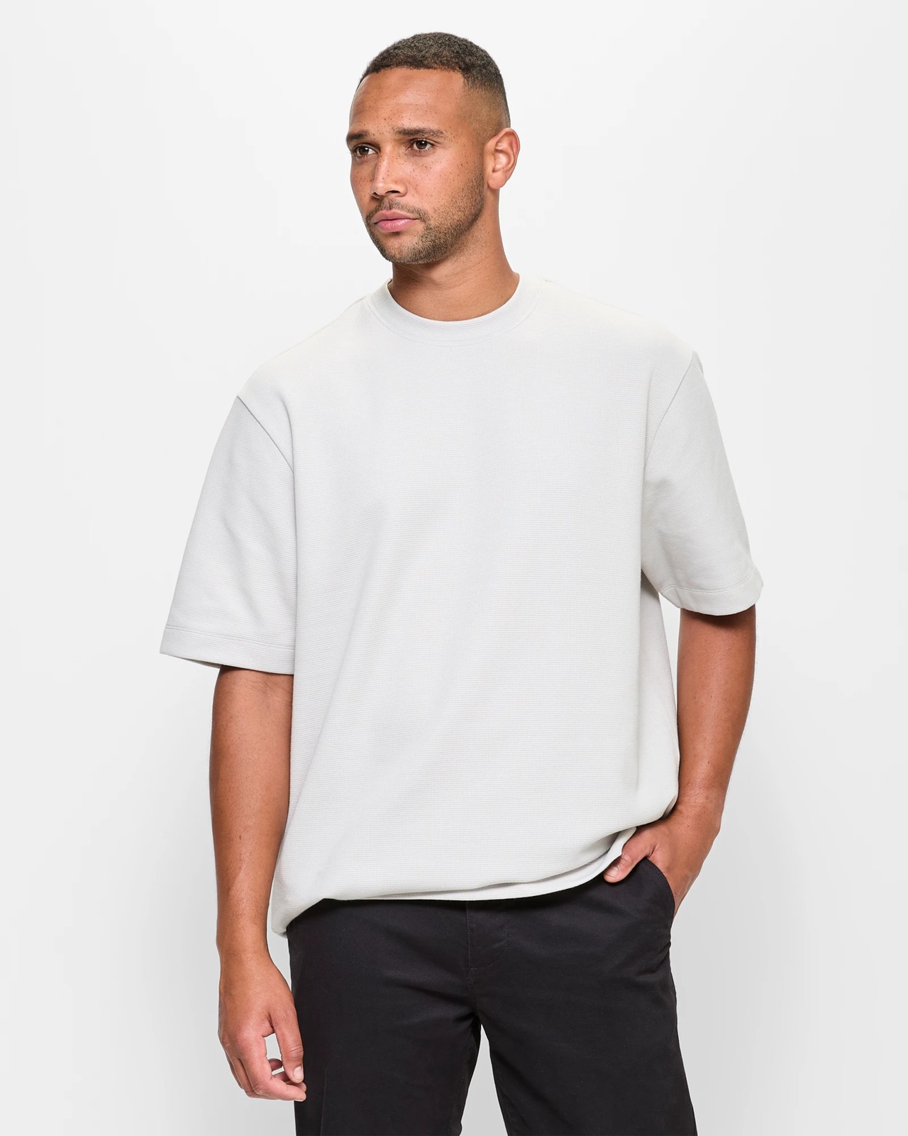 Experience ultimate comfort with our Australian Cotton Blend Oversized Waffle T-Shirt. This lightweight top, made from a high-quality cotton and polyester blend, features an all-over waffle design and comes in a timeless light grey. Its oversized fit, complemented by a crew neckline and short sleeves, ensures you stay stylishly relaxed. Perfect for weekend lounging or casual outings. Embrace effortless style and make it your go-to tee today.