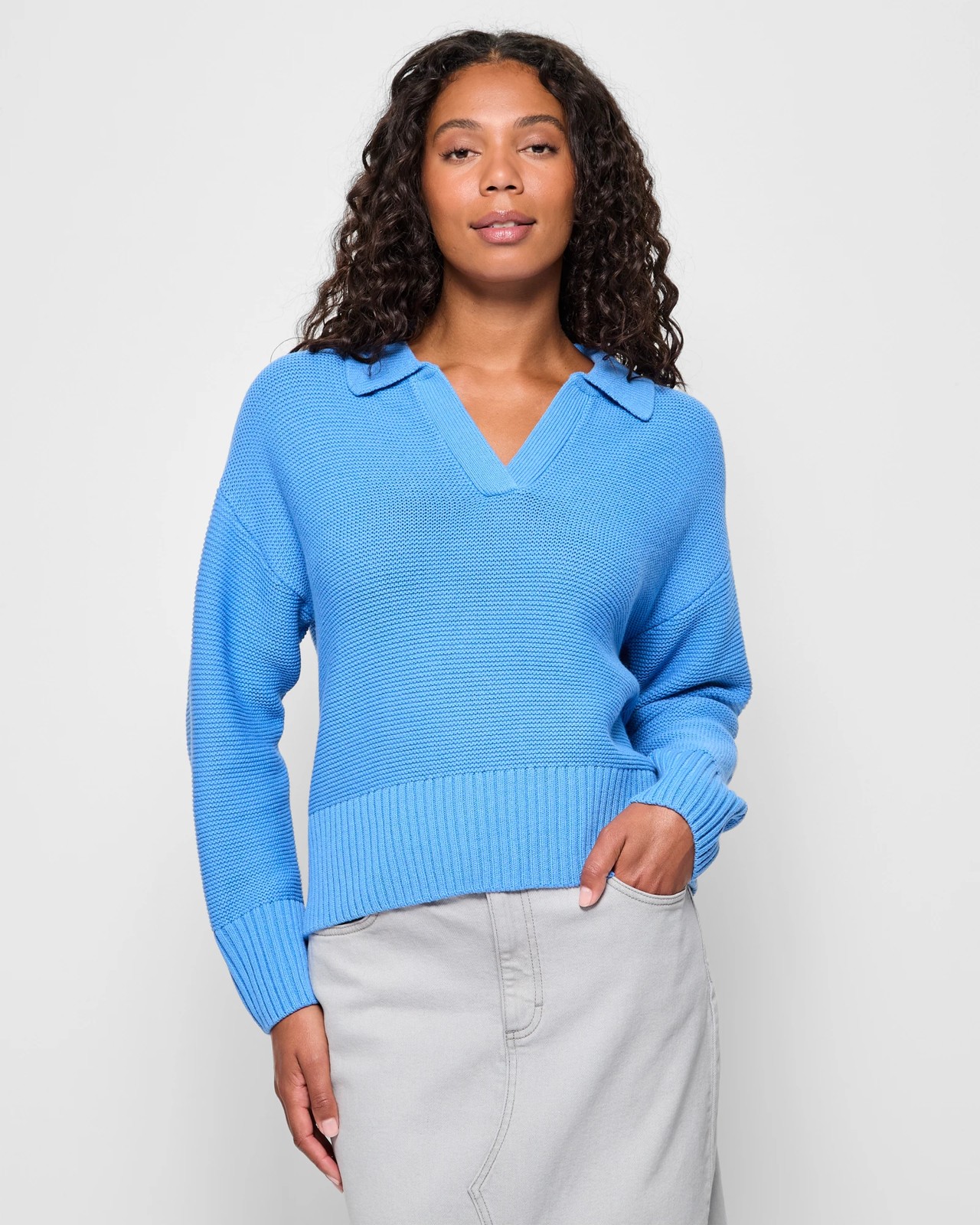 Discover unmatched comfort and style with our Australian Cotton Blend Polo Jumper. Featuring a special cotton and acrylic blend that includes Australian cotton, this jumper offers an irresistibly smooth feel. The unique textured knit design adds a sophisticated touch, while the regular fit, round ribbed collar with a v-drop, and long ribbed cuff sleeves ensure a timeless look. The crop length and thick ribbed hemline make it ideal for cooler days. Update your wardrobe with this versatile piece and enjoy effortless fashion every day. Don’t miss out on adding this cosy and chic jumper to your collection.