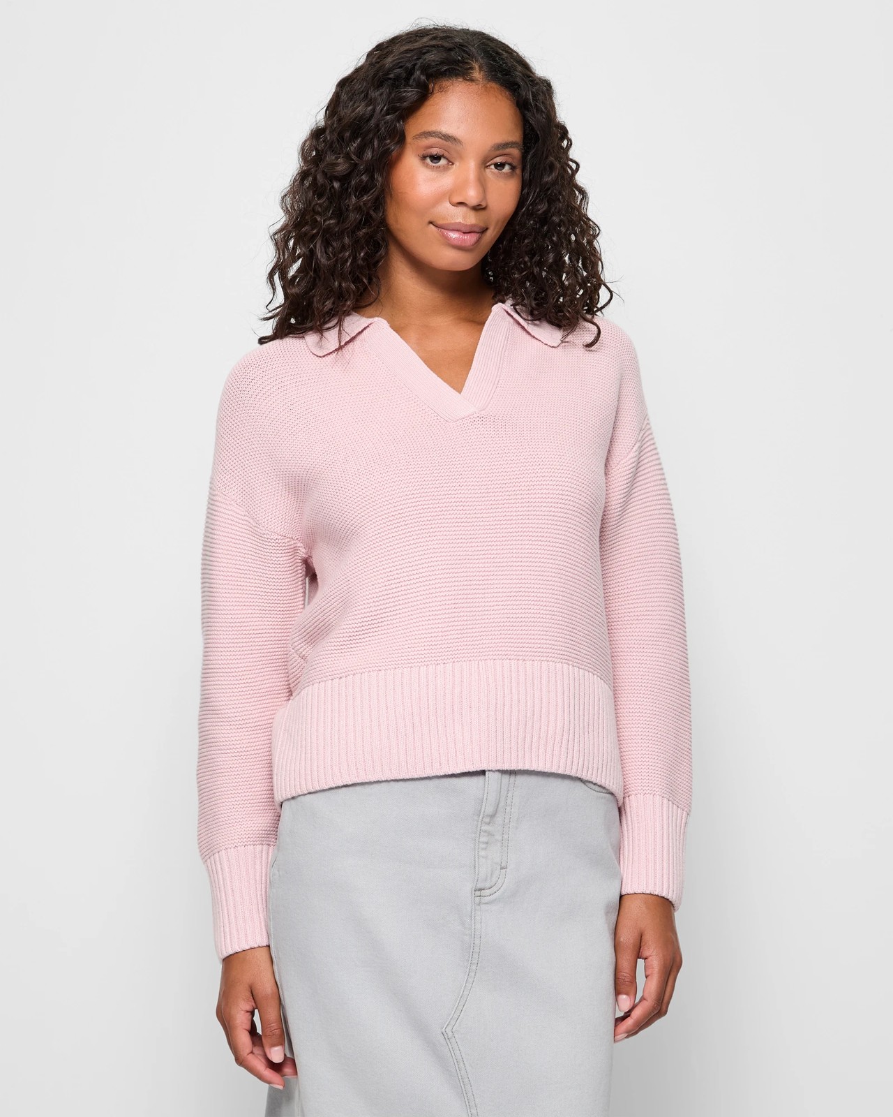 Discover unmatched comfort and style with our Australian Cotton Blend Polo Jumper. Featuring a special cotton and acrylic blend that includes Australian cotton, this jumper offers an irresistibly smooth feel. The unique textured knit design adds a sophisticated touch, while the regular fit, round ribbed collar with a v-drop, and long ribbed cuff sleeves ensure a timeless look. The crop length and thick ribbed hemline make it ideal for cooler days. Update your wardrobe with this versatile piece and enjoy effortless fashion every day. Don’t miss out on adding this cosy and chic jumper to your collection.