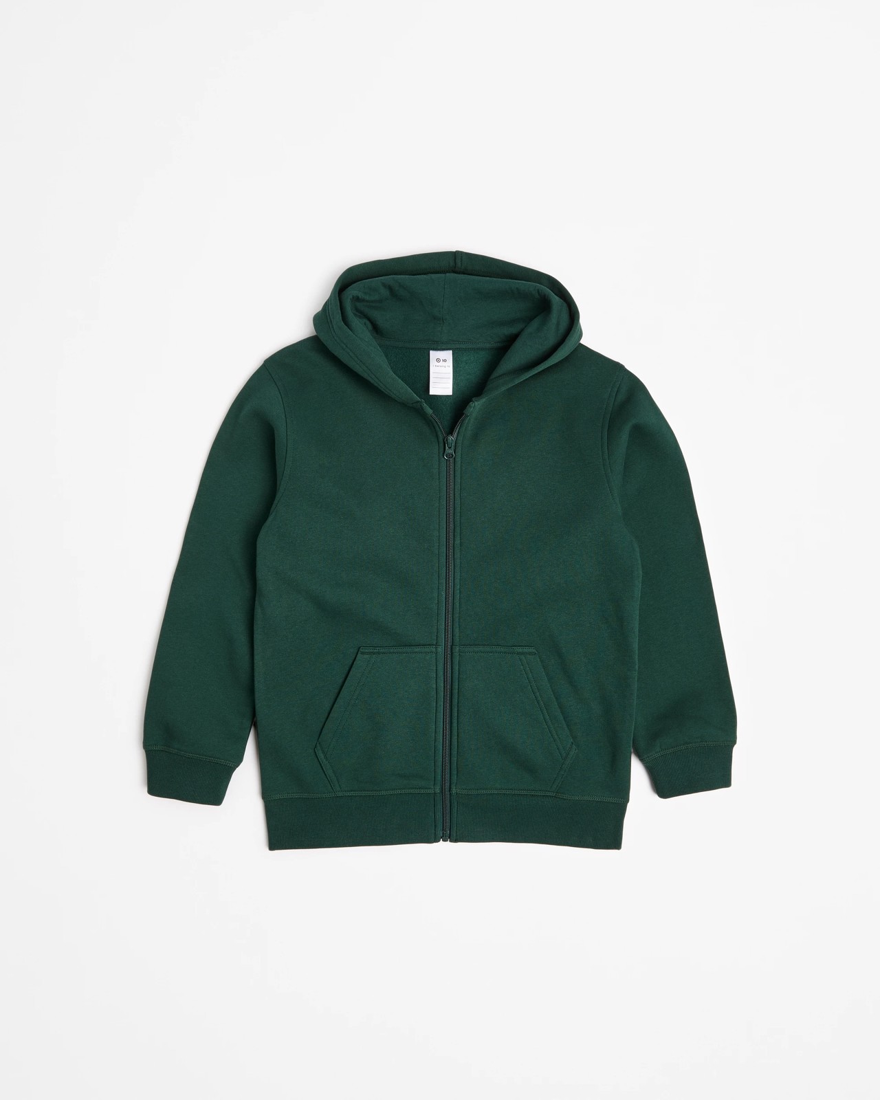 Australian Cotton Blend School Zip Through Fleece Jumper - Bottle Green