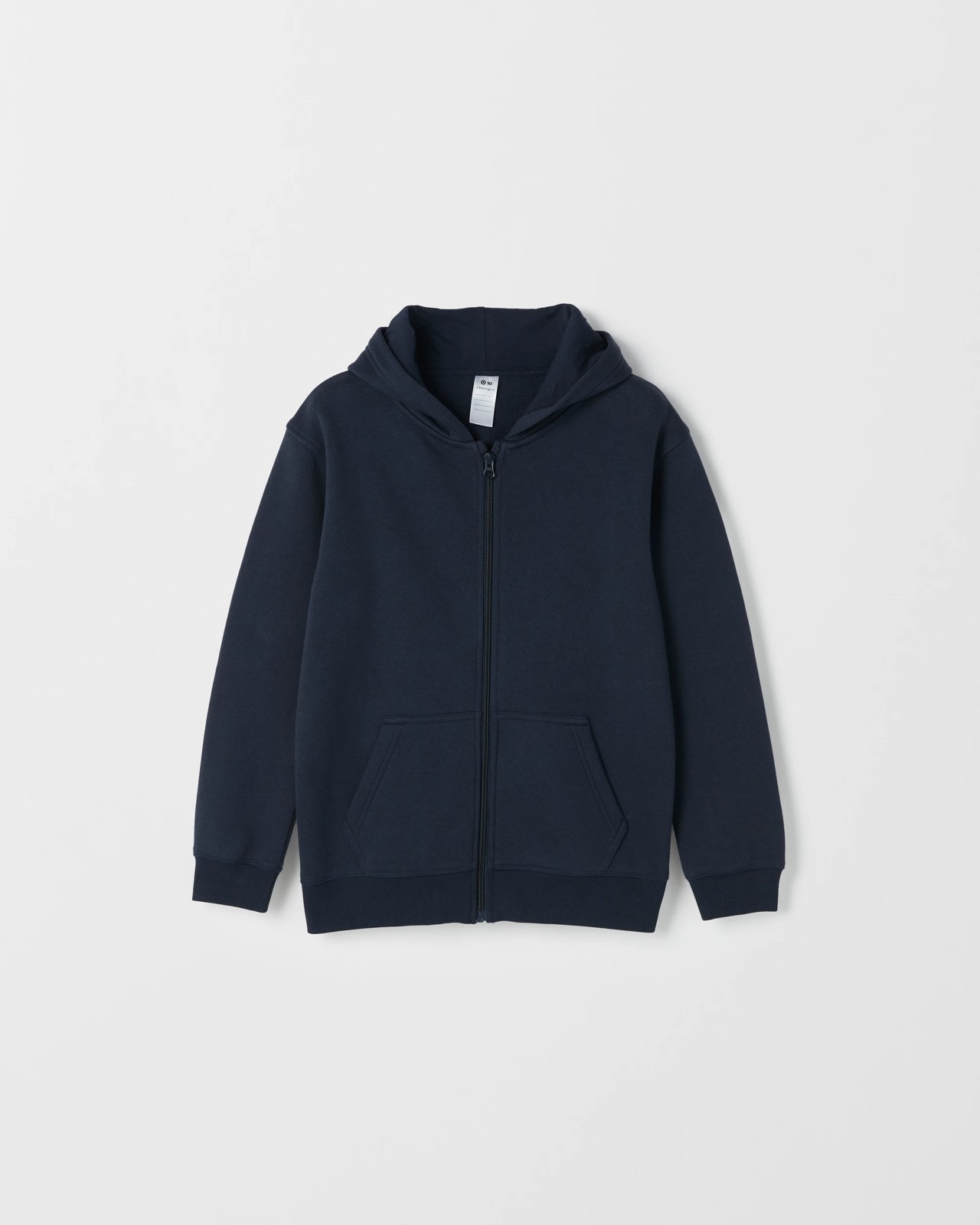 Let your child breeze through busy school days in this comfortable Australian cotton blend fleece jumper. The gentle feel of the soft cotton blend makes it ideal for everyday activities, keeping kids feeling snug from morning assembly right through to home time. With a zip-through design that's easy for kids to master and a cosy fleece interior, they'll stay warm when the weather cools. The ribbed cuffs and hem bring a touch of flexibility for the perfect fit, while the convenient kanga pocket is just right for storing essentials or warming up small hands. Add this school essential to your child's routine and see them enjoy favourite comfort in style.
