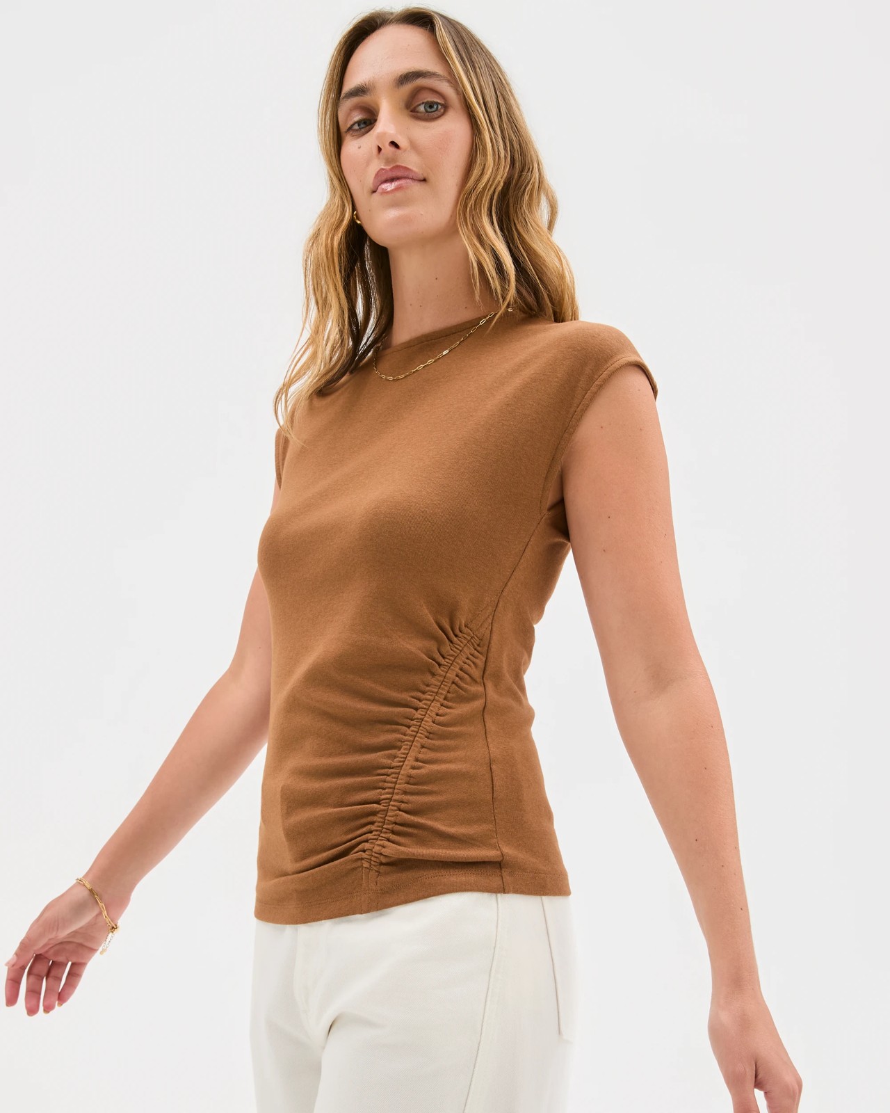 Australian Cotton Blend Soft Touch Front Gathered Seam T-Shirt - Coconut Shell