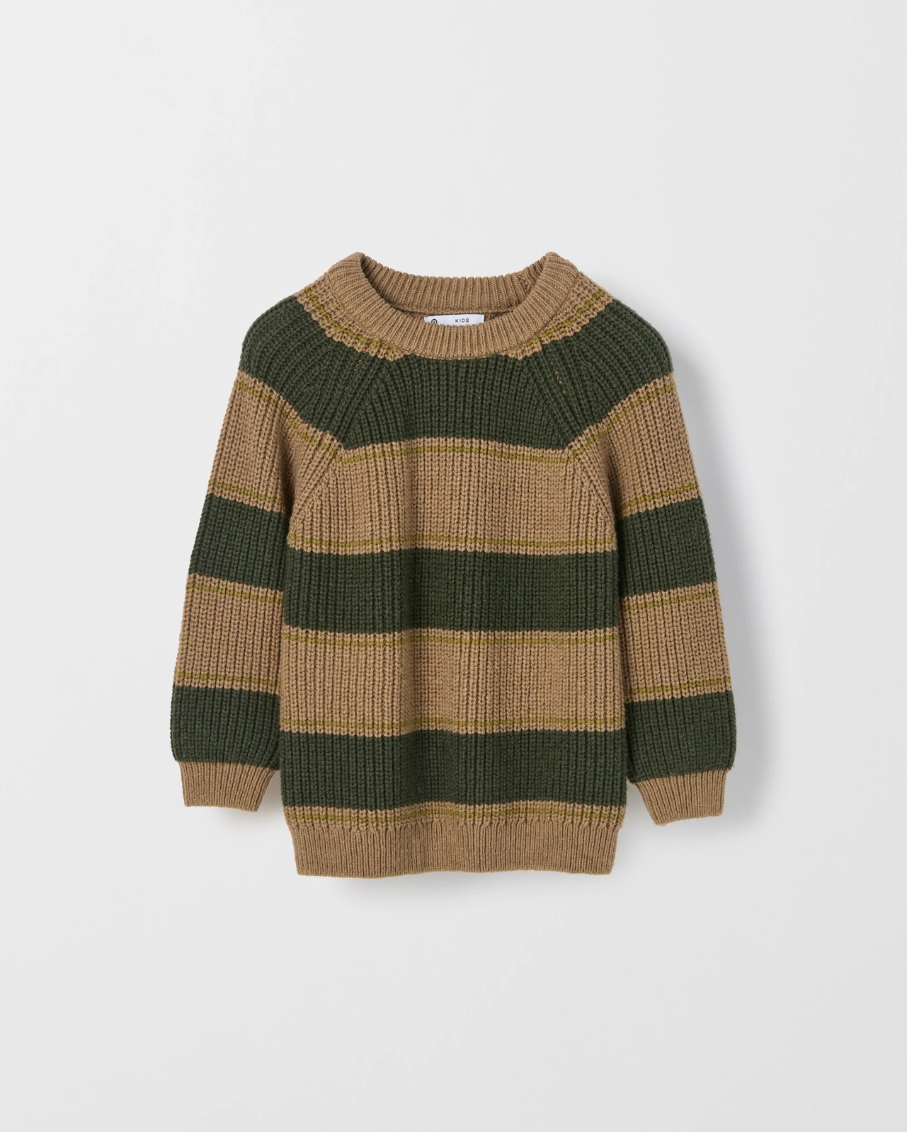 Treat your child to snug comfort with the Australian Cotton Stripe Knit Crew Neck Jumper. Made using a superior blend that features Australian cotton, this jumper offers a soft, gentle feel perfect for active days and relaxing evenings alike. The bold stripe pattern and chunky rib knit give it a cheerful look that easily becomes a wardrobe staple. With its regular fit, ribbed crew neckline and long raglan sleeves with ribbed cuffs, this jumper keeps chilly breezes at bay while allowing plenty of room to move. The straight, ribbed hemline finishes the look with simplicity and charm. Add this versatile, fun jumper to their collection and let their personality shine through every outfit. Grab yours now and enjoy everyday warmth and style.