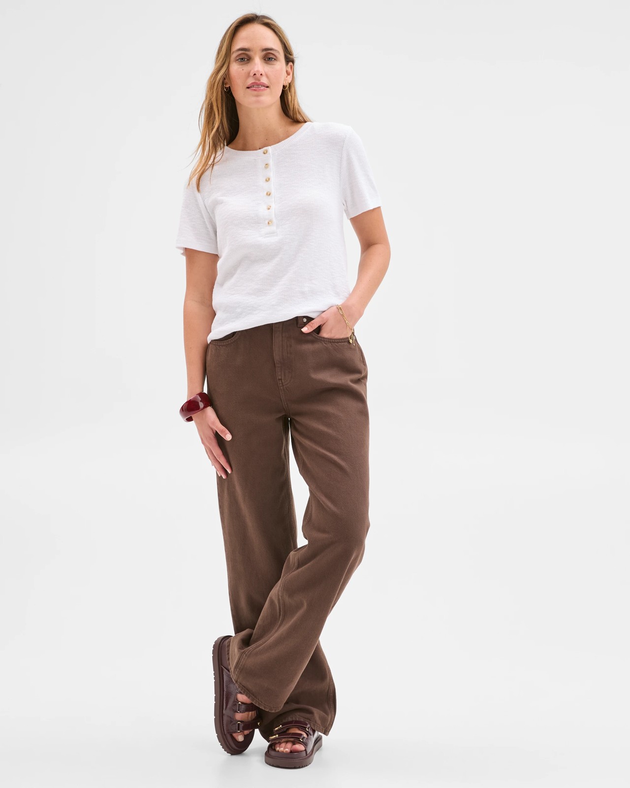 Australian Cotton Blend Textured Rib Henley T-Shirt - White