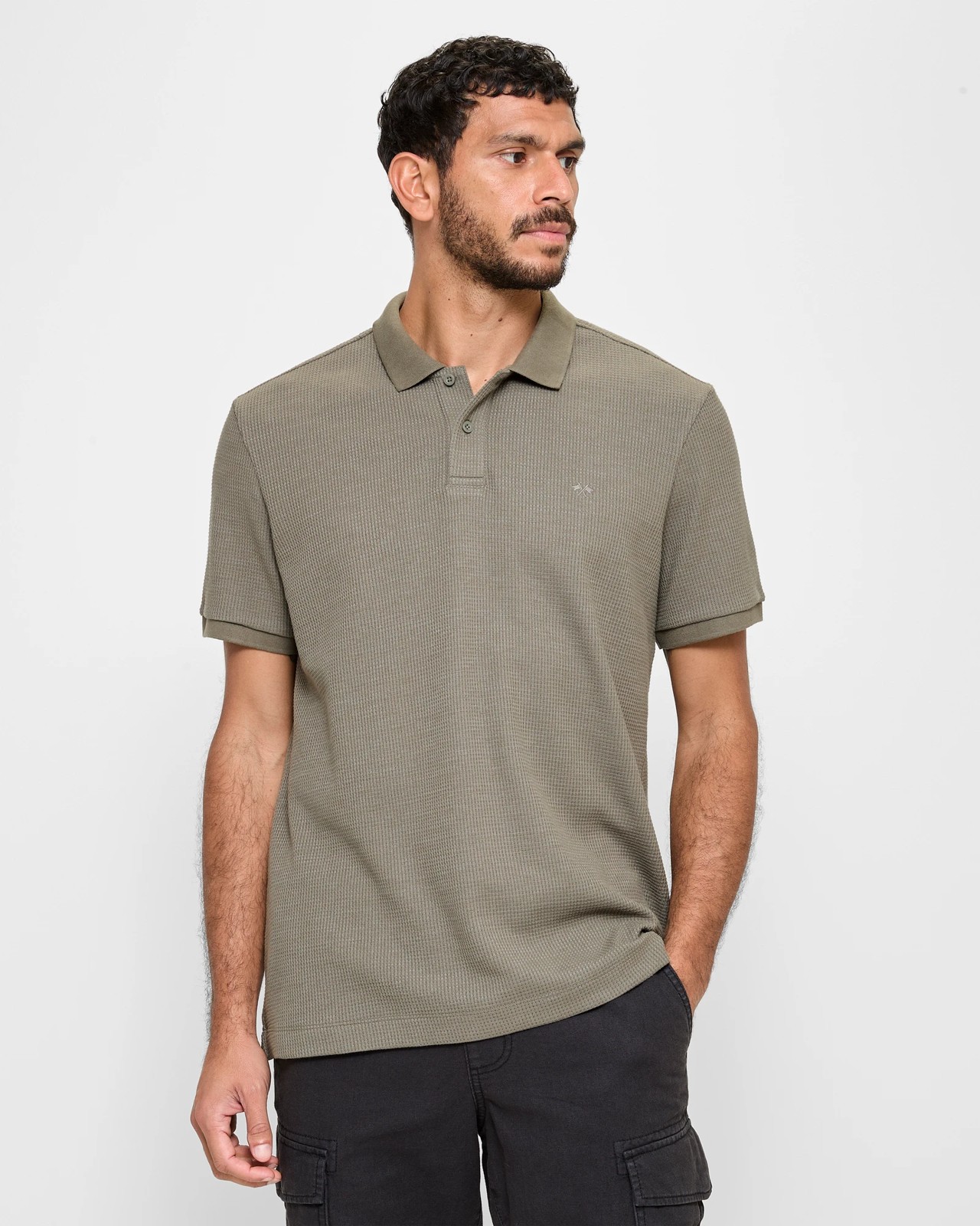 Enhance your style with our Australian Cotton Blend Waffle Polo Top. Crafted from a blend of premium cotton and polyester, featuring the finest Australian cotton, the top offers a classic yet unique waffle pattern. Its round rib collared neckline and button-down front exude sophistication. Whether you're out for a casual day or a weekend adventure, the double flag embroidery on the chest adds a touch of elegance. The regular fit, short sleeves, and small side seam splits provide comfort and flexibility. Elevate your wardrobe today!
