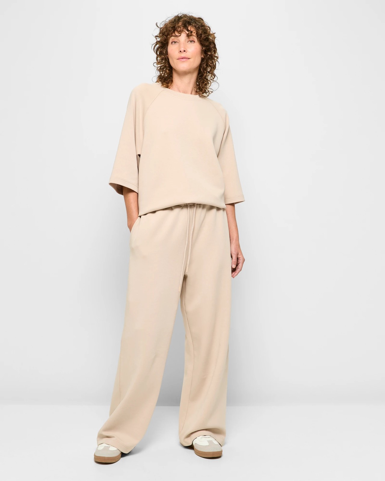 Step out in style with these Australian Cotton Blend Wide Leg Interlock Pants, perfect for any casual occasion. The rich blend of cotton and polyester, along with added elastane, ensures a comfortable and flexible fit. These pants feature a high waist, an elastic waistband with a drawstring for easy adjustments, and practical side seam pockets. Their wide-leg design and full-length straight hemline offer a contemporary look. Whether you're meeting friends or enjoying a relaxed afternoon, these trousers ensure you look effortlessly stylish. Add them to your collection today and embrace comfort with a modern twist.