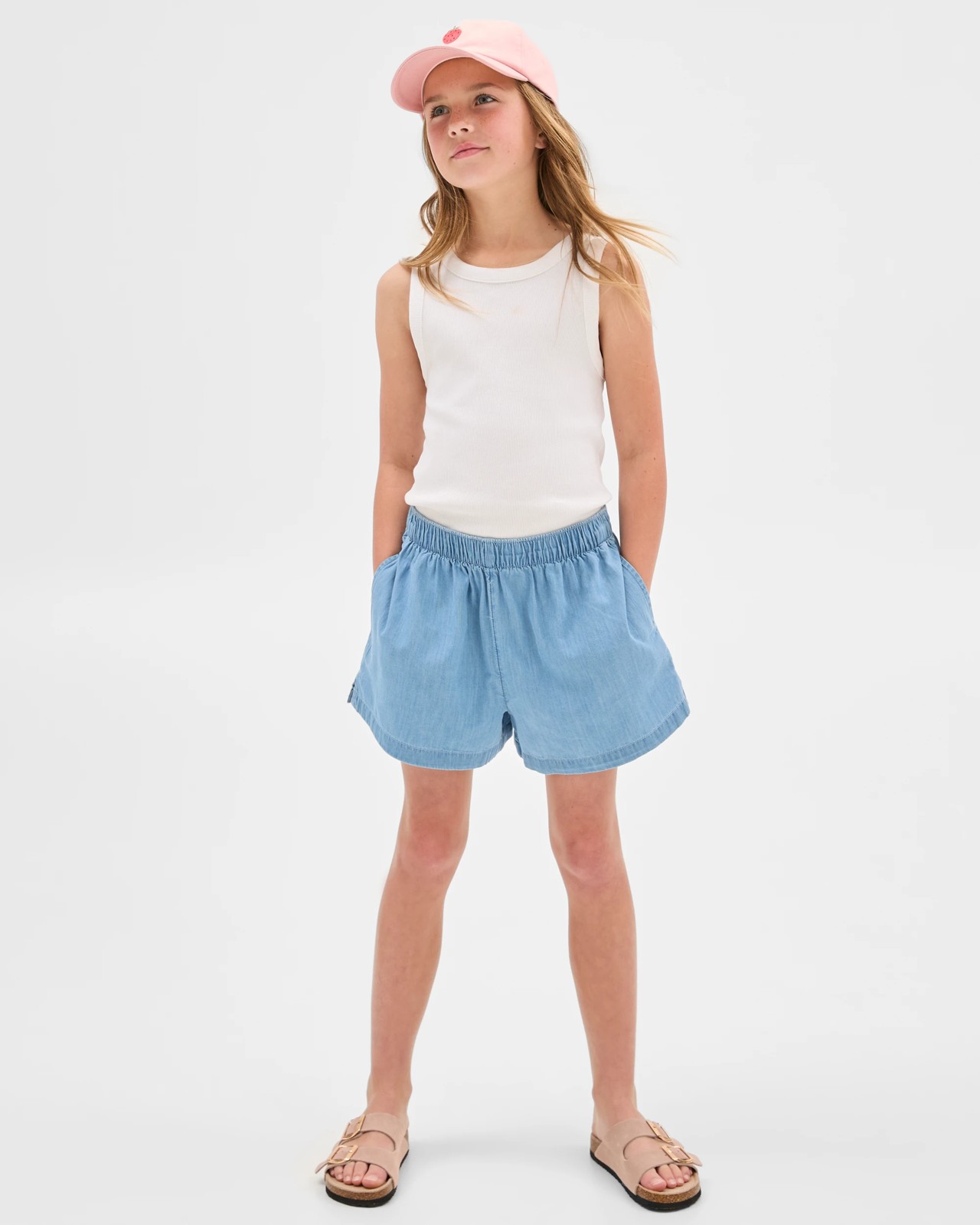 Let your little one enjoy playful adventures in comfort and style with these Australian cotton chambray shorts. Designed with a regular fit, soft blue hue and an easy pull-on elastic waist, these shorts are perfect for active days at the park or family outings. Handy side pockets keep all their treasures close, while a split hemline adds a fashionable touch. Whether for a sunny picnic or a day at nursery, these shorts are a versatile and comfy choice. Bring home a pair today and make everyday dressing simple and cheerful.