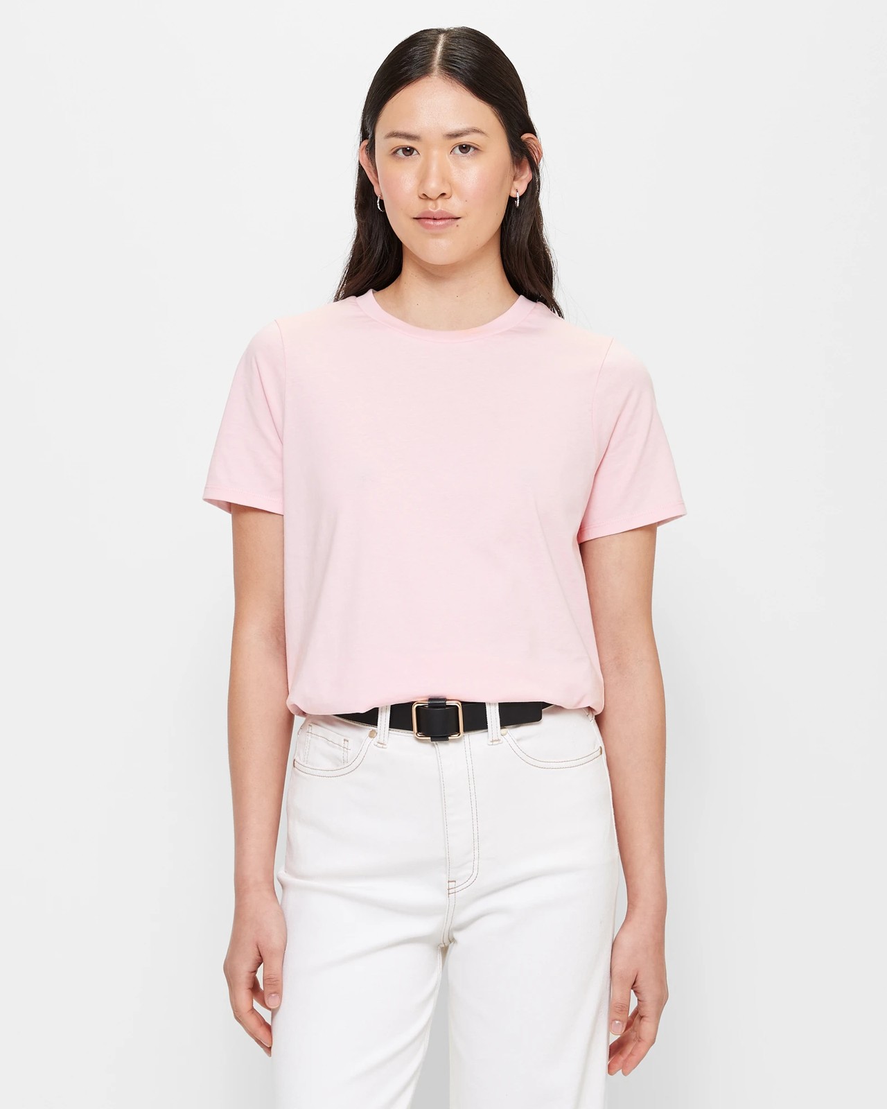 Introducing the new classic crew neck t-shirt from Target Woman, a perfect addition to any wardrobe. Made with Australian cotton, this shirt is breathable and super soft to the touch. It features a regular fit, crew neckline, short sleeves and straight hemline for an effortless look. Whether you’re dressed up or down, this classic t-shirt is sure to be your go-to for any occasion.
