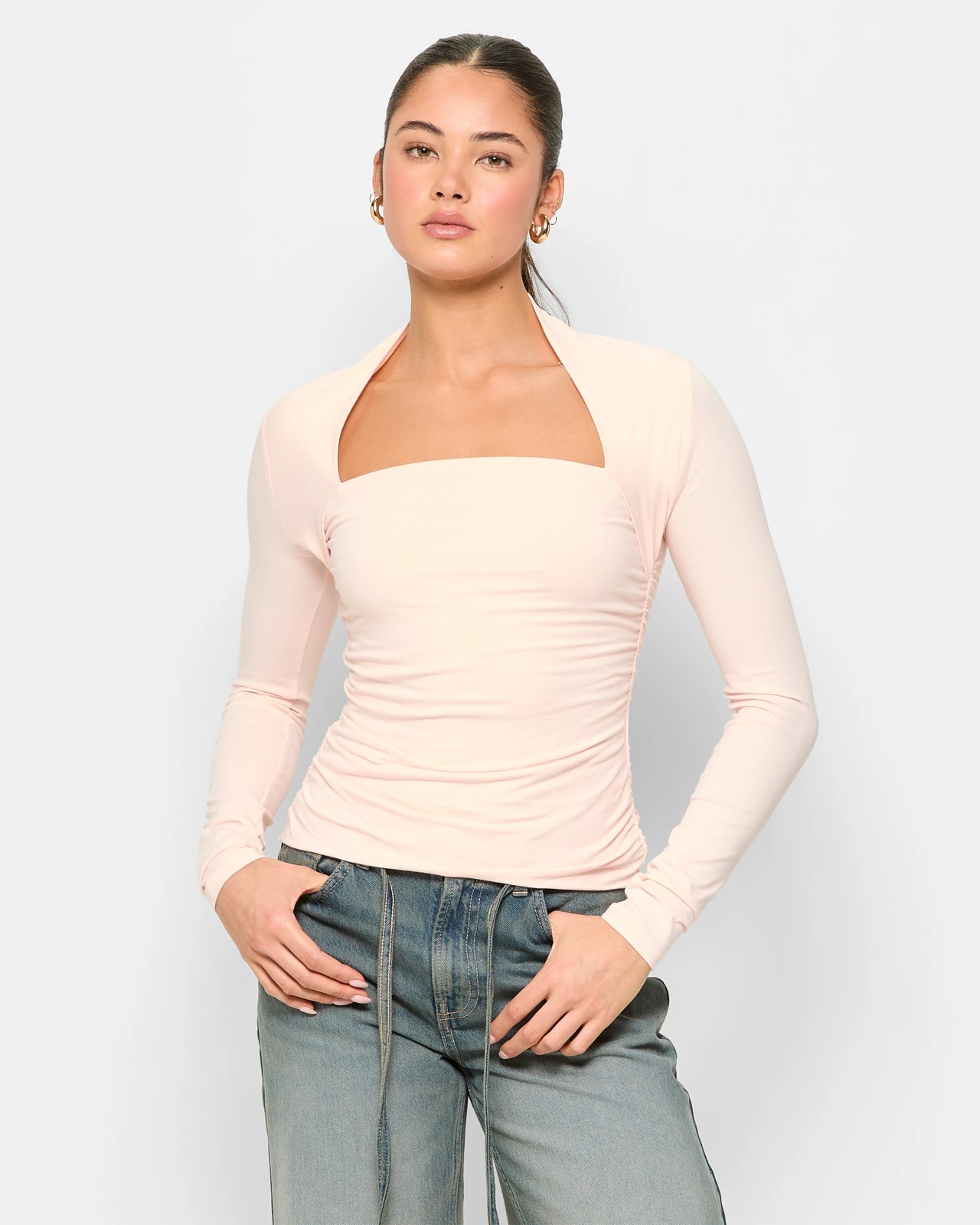 Discover the charm of the Australian Cotton Double Layer Long Sleeve Top by Lily Loves. This top combines cotton and elastane for exceptional comfort and stretch. Lightweight yet sophisticated, it features a unique double-layer design and a sleek, slim fit. The high rounded collar with a distinctive square front adds to its appeal. Long sleeves with elegant ruching down the sides and a straight hemline make it a versatile addition to your wardrobe. Transform your everyday look with ease, making this top your go-to choice for any occasion.