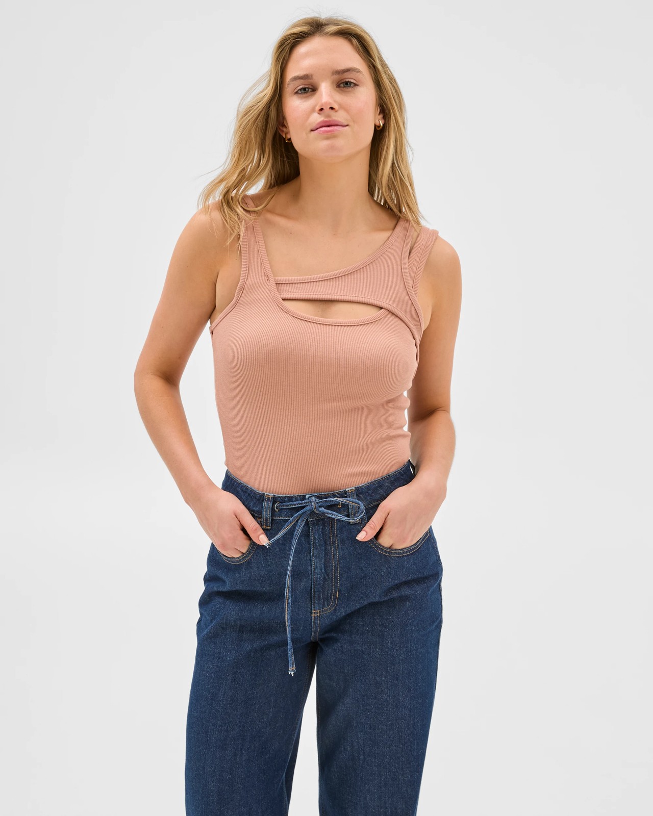 Enjoy all-day comfort in the Lily Loves double layer ribbed tank top. With its cotton-rich material and gentle stretch, this tank feels wonderful from the moment you put it on. Its ribbed finish gives a lovely texture, while the slim fit hugs just right. The scoop neckline, delicate straps, and crossover front and back with a charming keyhole detail add a playful twist. Light and easy to wear, this top is perfect on its own or under your favourite outerwear. Make it your go-to piece for both relaxed days and social outings.