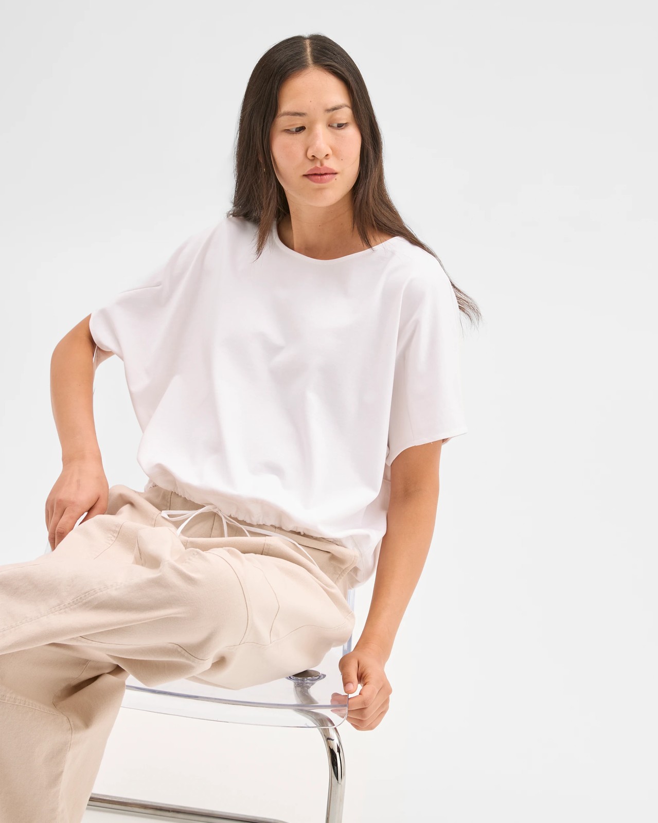 Australian Cotton Drawcord Hem T-Shirt - Brilliant White
