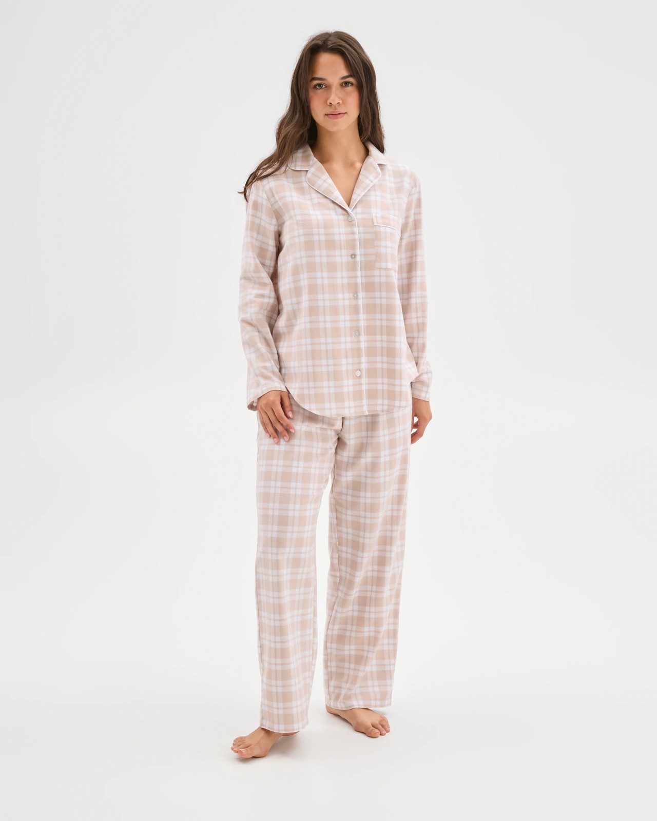 Australian Cotton Flannelette Pyjama Set - Gingham Neutral