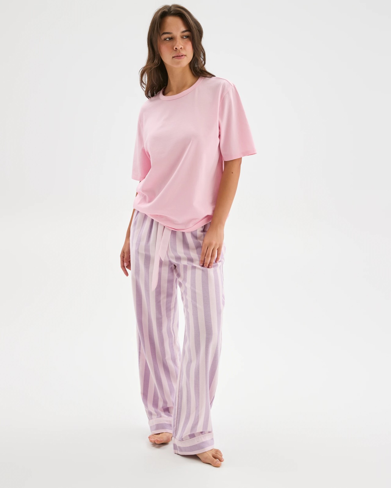 Australian Cotton Flannelette Wide Leg Sleep Pants - Pink Stripe