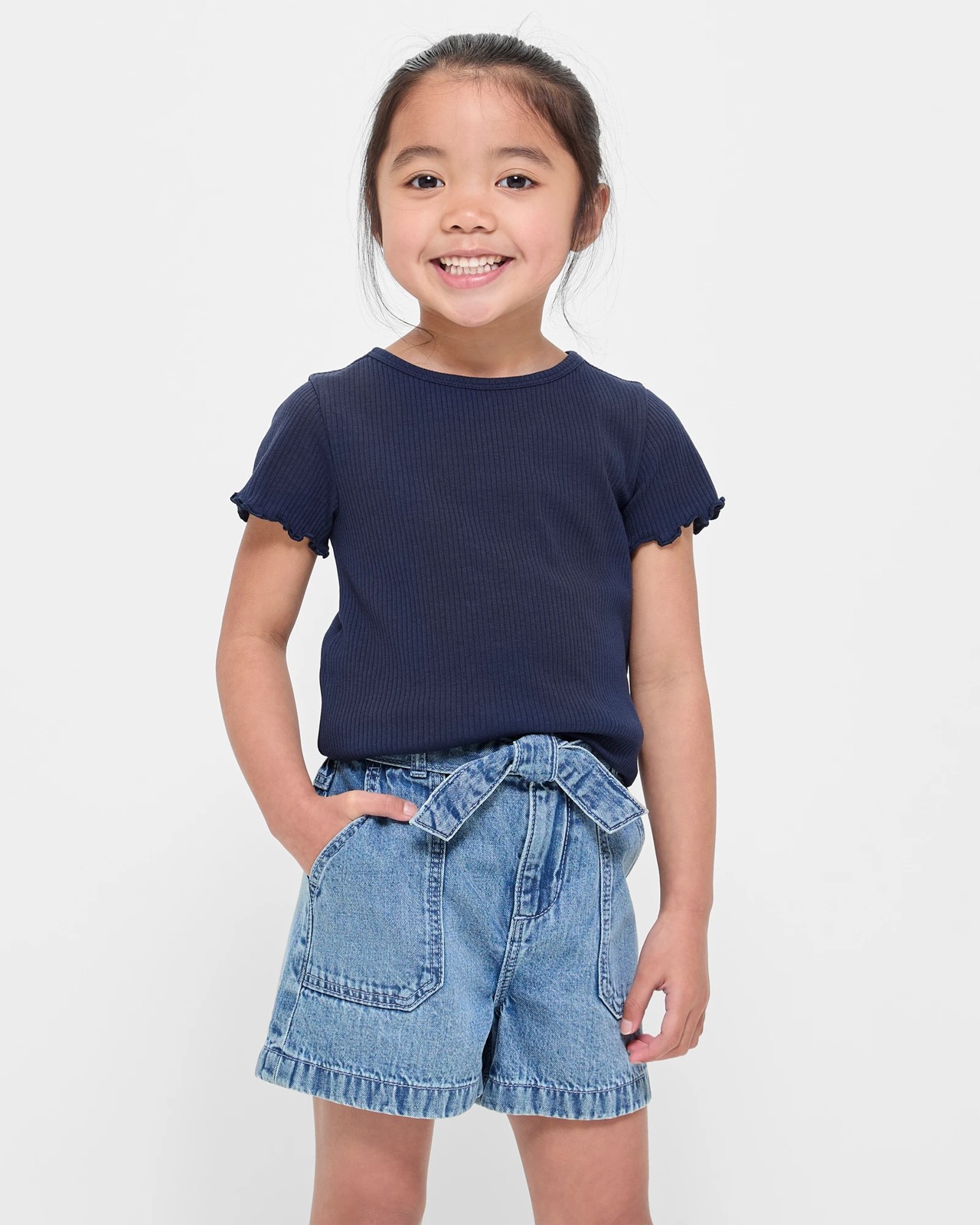 Step up her style game with this adorable Australian Cotton Girls Rib T-shirt. Made from soft Australian cotton rib, this t-shirt offers a comfortable and regular fit with great stretch, perfect for all-day wear. The crew neck and cap sleeve with lettuce cuffs add a touch of elegance, while the lettuce hem adds a playful flair. Whether she's heading to a playdate or a family outing, this t-shirt will keep her looking and feeling fabulous.