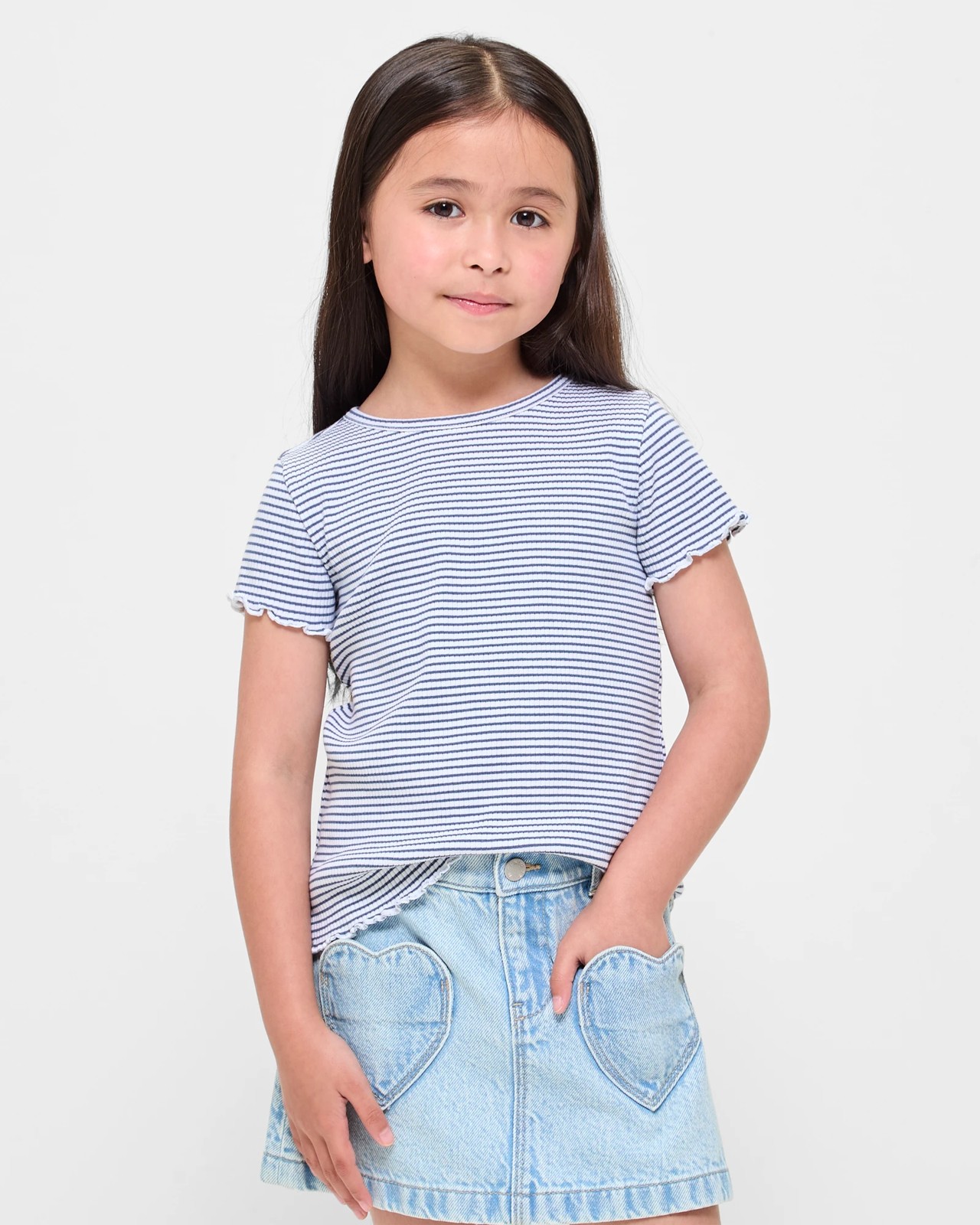 Step up her style game with this adorable Australian Cotton Girls Rib T-shirt. Made from soft Australian cotton rib, this t-shirt offers a comfortable and regular fit with great stretch, perfect for all-day wear. The crew neck and cap sleeve with lettuce cuffs add a touch of elegance, while the lettuce hem adds a playful flair. Whether she's heading to a playdate or a family outing, this t-shirt will keep her looking and feeling fabulous.